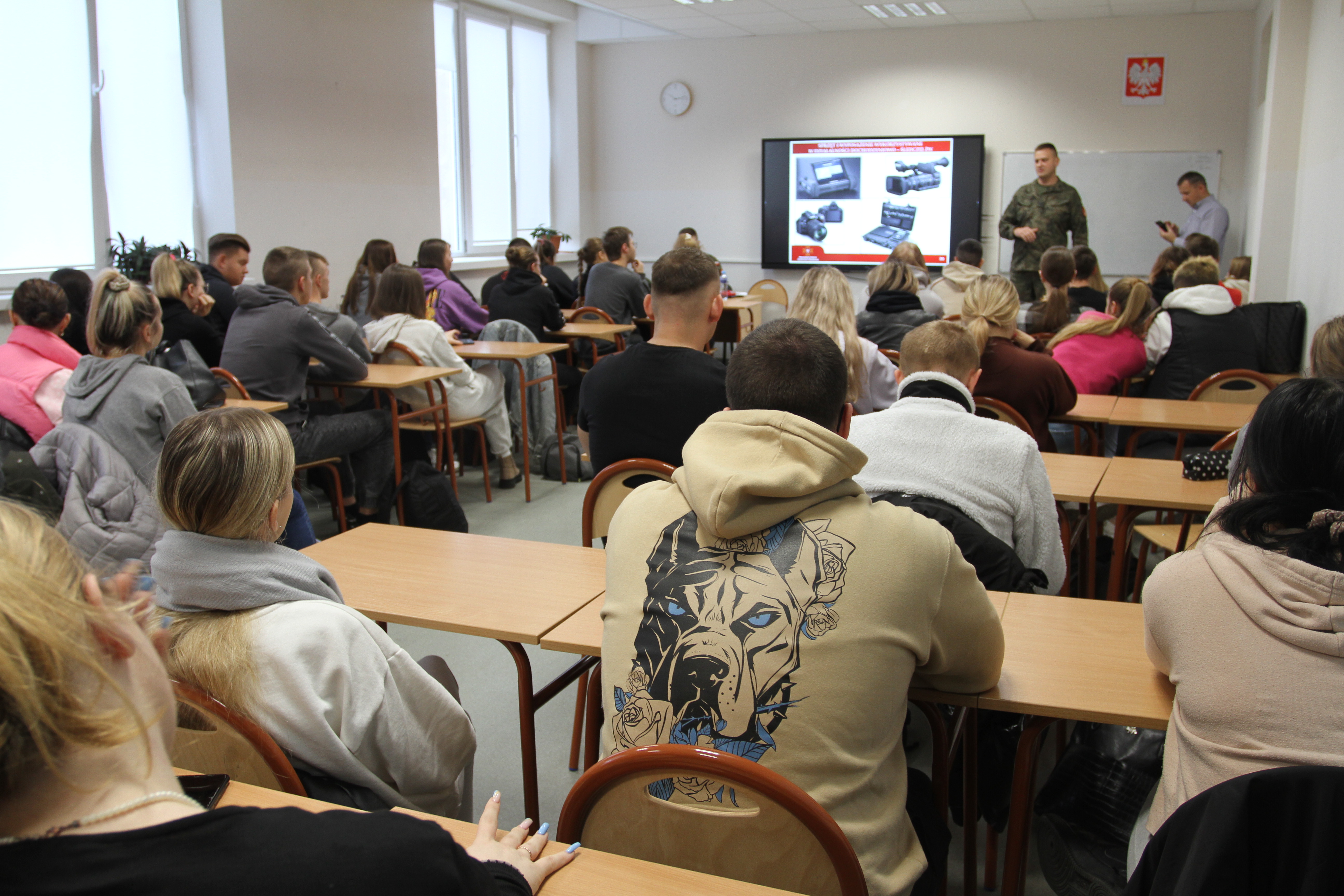 Cenną lekcję na temat pracy w żandarmerii odbyli 23 listopada 2022 r. uczniowie czwartych klas wojskowych i policyjnych Szkół im. 72 Pułku Piechoty. Na spotkanie z młodzieżą przybyli przedstawiciele Mazowieckiego Oddziału Żandarmerii Wojskowej, Placówka w Radomiu: st. chor. sztabowy Michał Puchta, mł. chor. Sebastian Curyłło i st. szer. Daniel Rutowicz. Uczniowie mieli okazję dowiedzieć się, jakie obowiązki w systemie obrony i bezpieczeństwa Ojczyzny pełnią żołnierze żandarmerii, jakie trzeba spełniać kryteria, by zostać zatrudnionym w tych służbach. Po obejrzeniu prezentacji i wysłuchaniu informacji zapewne niejeden tegoroczny maturzysta rozważy wybór swojej przyszłości zawodowej właśnie z tym kierunkiem.