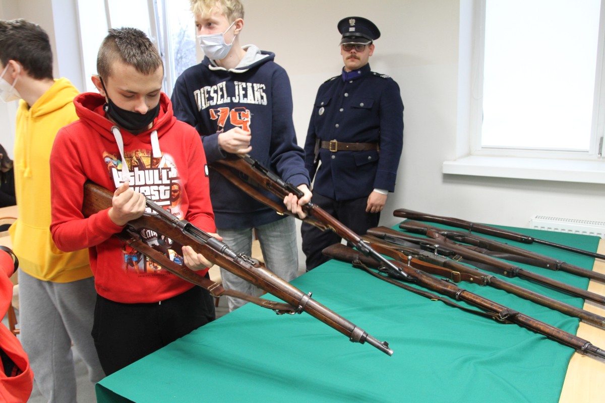 29 listopada 2021 r. w naszej szkole miało miejsce spotkanie uczniów klas o profilu policyjnym na żywej lekcji historii z Grupą Rekonstrukcji Historycznej III Okręgu Policji Państwowej z Radomia. Uczniowie klas :4 TB,2 LB,1LA z zaciekawieniem wysłuchali pogadanki p. Pawła Murawskiego szefa grupy na temat historii policji II Rzeczypospolitej oraz obejrzeli eksponaty związane z działalnością tej formacji.