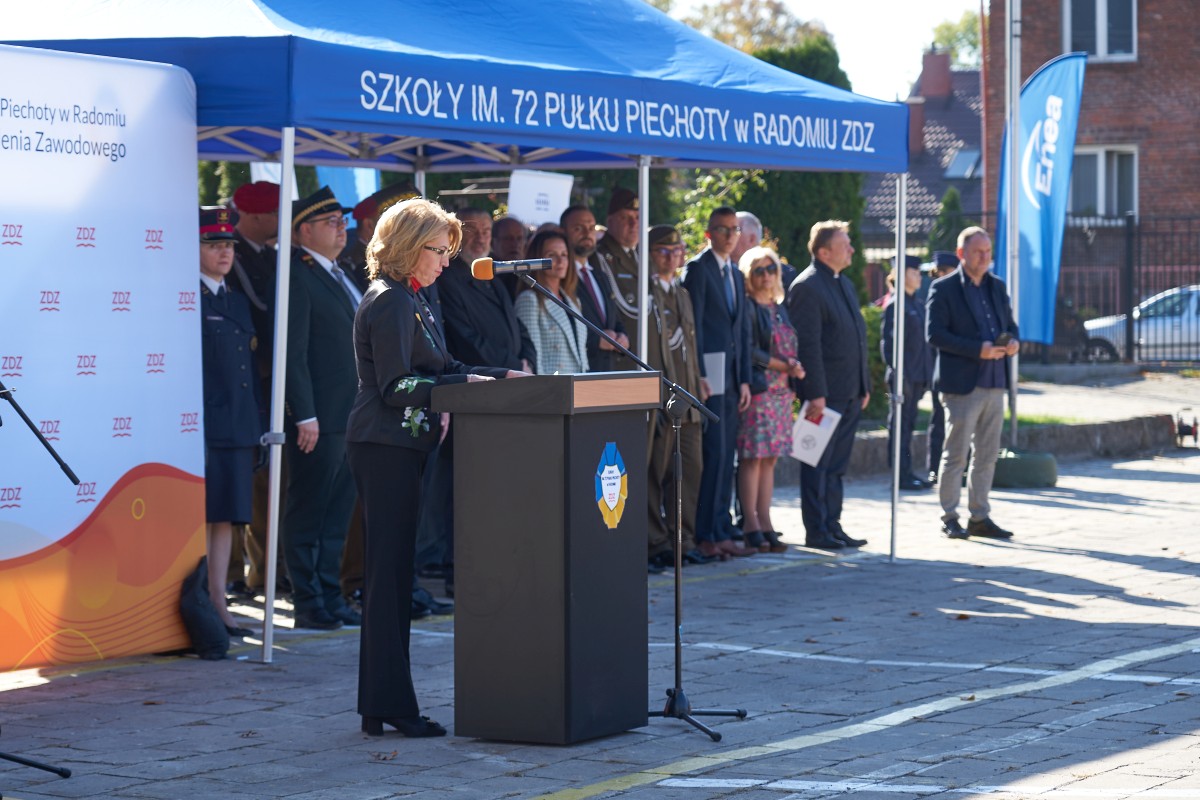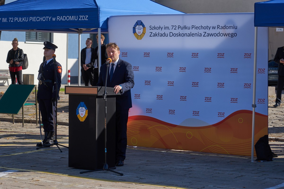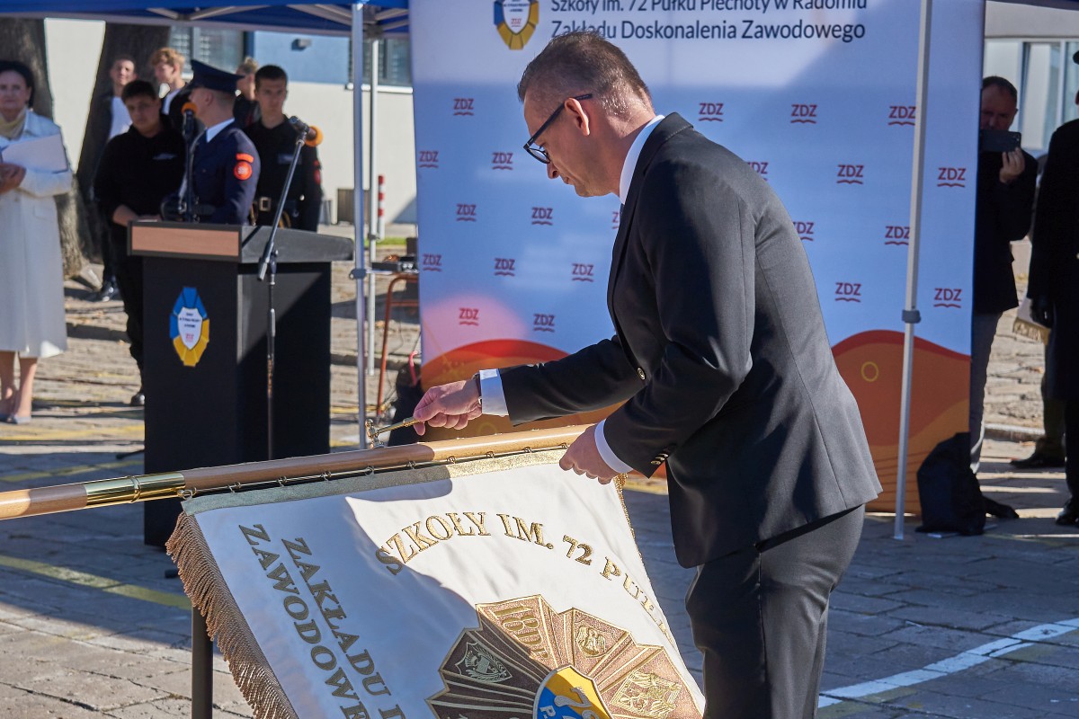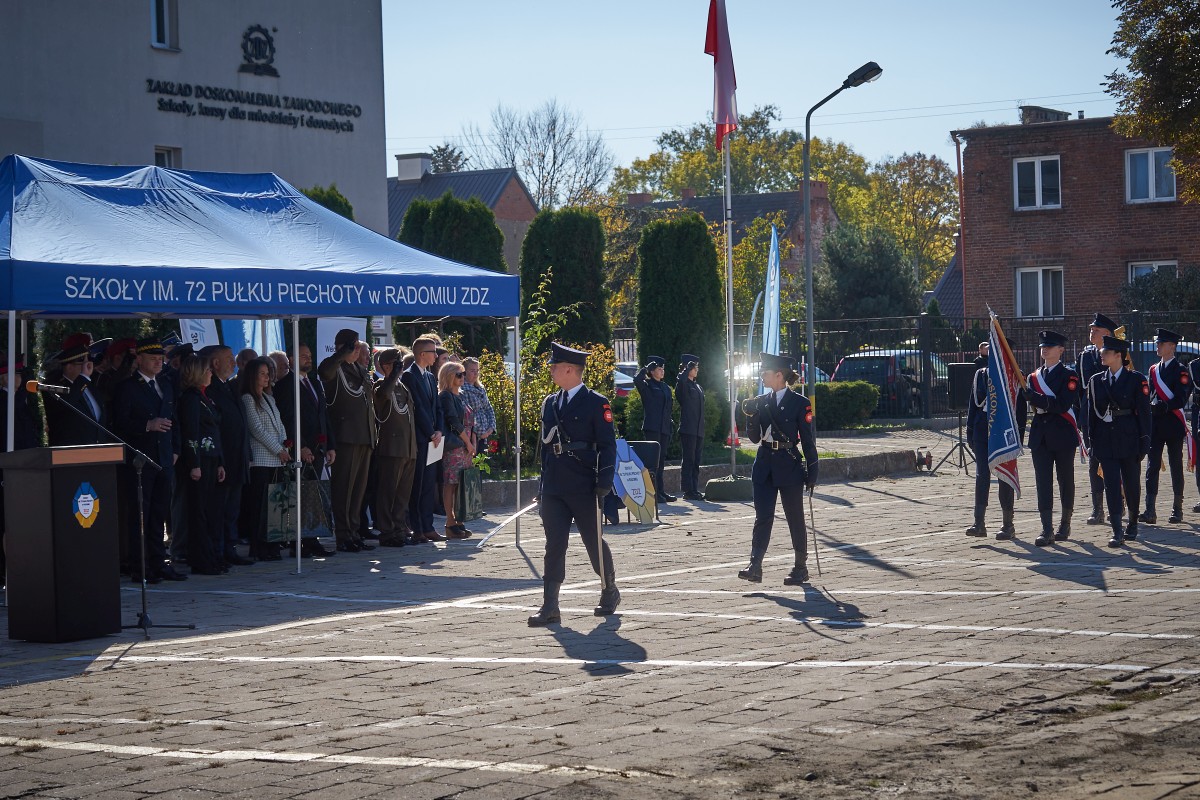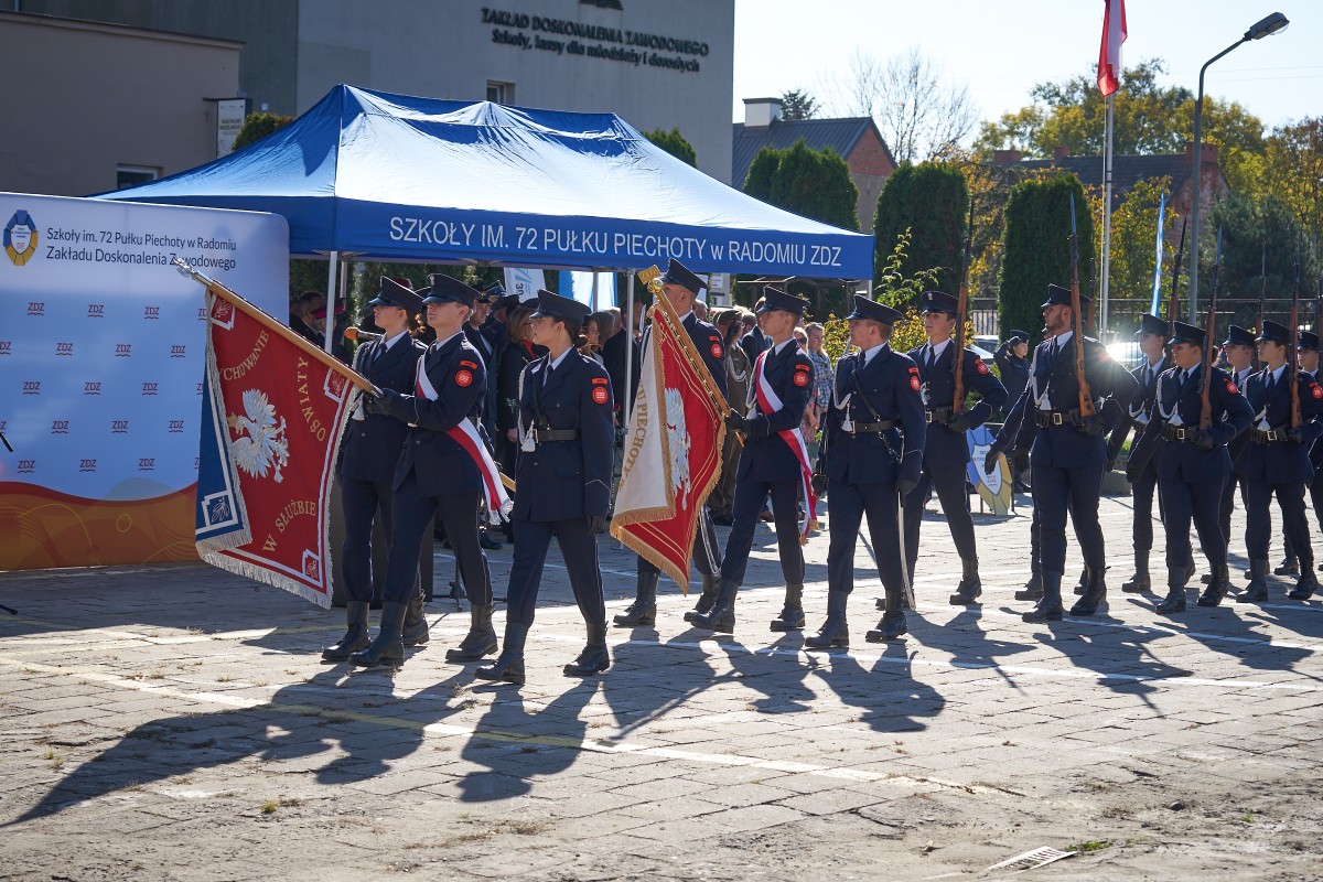 7 października 2022 r. społeczność Szkół im. 72 Pułku Piechoty w Radomiu przeżyła podniosłą uroczystość nadania i poświęcenia Sztandaru. Wydarzenie to, rozpoczęte efektownym pokazem artystycznym w wykonaniu uczniów klas fryzjerskich, było jednocześnie kulminacją tegorocznych obchodów 75-lecia Stowarzyszenia Oświatowego Zakład Doskonalenia Zawodowego oraz 30-lecia edukacji młodzieży i osób dorosłych w Radomiu pod szyldem ZDZ. Uroczystość przebiegała zgodnie z wojskowym ceremoniałem, z udziałem szkolnej kompanii reprezentacyjnej. Przy pięknej słonecznej pogodzie, nadanie sztandaru stało się prawdziwym świętem zarówno dla uczniów, rodziców, grona pedagogicznego, pracowników szkoły, jak i partnerów oraz przyjaciół, którzy zaszczycili swoją obecnością sztandarowy ceremoniał. Złożyło się na niego odczytanie aktu nadania, symboliczne wbicie gwoździ w drzewiec, poświęcenie, wreszcie przekazanie sztandaru młodzieży. Wśród gości nie zabrakło przedstawicieli Ministerstwa Obrony Narodowej, władz miejskich, oświatowych, służb mundurowych, środowiska kombatanckiego, pracodawców tych branż, dla których szkoła kształci przyszłe kadry. Obecni byli m.in. Paweł Dycht – zastępca dyrektora Departamentu Edukacji, Kultury i Dziedzictwa MON, dr Katarzyna Kalinowska – wiceprezydent Radomia, Adrian Barański – dyrektor radomskiej Delegatury Mazowieckiego Kuratorium Oświaty, Jerzy Wątroba – prezes Zarządu Zakładu Doskonalenia Zawodowego w Kielcach, czyli organu prowadzącego Szkoły im. 72 Pułku Piechoty w Radomiu. Na adres szkoły wpłynęły listy gratulacyjne m.in. od parlamentarzystów Andrzeja Kosztowniaka i Marka Suskiego. Uroczystość zakończyła msza święta w kościele garnizonowym, sprawowana pod przewodnictwem ordynariusza diecezji radomskiej, księdza biskupa Marka Solarczyka w intencji społeczności szkolnej. Nie pozostaje nic innego, jak podziękować raz jeszcze wszystkim za wszystko, co przyczyniło się do uświetnienia uroczystości, która na trwale zapisała się w karty historii szkoły. W gronie tym są fundatorzy naszego Sztandaru: Enea Nowa Energia w Radomiu, Firma Radwag Wagi Elektroniczne i Zakłady Automatyki Kombud SA.