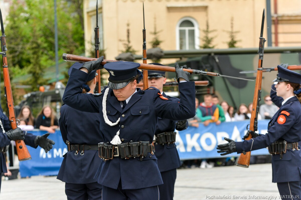 W dniach 29-30 maja 2023 r. w stolicy polskich Tatr odbyła się ósma edycja Ogólnopolskiego Przeglądu Musztry Klas Mundurowych. Wydarzenie na Placu Niepodległości w Zakopanem obserwowali licznie zgromadzeni turyści, mieszkańcy miasta, fotoreporterzy. A było co podziwiać: 16 drużyn - reprezentantów 16 województw, wyłonionych podczas przeglądów na szczeblu wojewódzkim, pokazało swoje umiejętności w trzech konkurencjach: program obowiązkowy, program dowolny i pieśń marszowa. Nasza kompania reprezentacyjna, która ok. miesiąca temu okazała się najlepsza na Mazowszu, nie zawiodła również w przeglądzie ogólnopolskim. Zajęcie II miejsca i tytuł wicemistrza Polski to największy dotychczasowy sukces. Warto dodać, że kompania liczy 20 uczennic i uczniów, jej obecnym dowódcą jest Karolina Migdał. 2 czerwca br. dyrektor Katarzyna Kołodziejska spotkała się z wicemistrzowską drużyną, by złożyć młodzieży i jej opiekunom, nauczycielowi Pawłowi Raczyńskiemu oraz Bartłomiejowi Rogali, serdeczne gratulacje. Wszystko odbyło się w blasku fleszy i kamer telewizyjnych, gdyż na spotkanie przybyli dziennikarze prasy, radia, telewizji oraz portali internetowych.