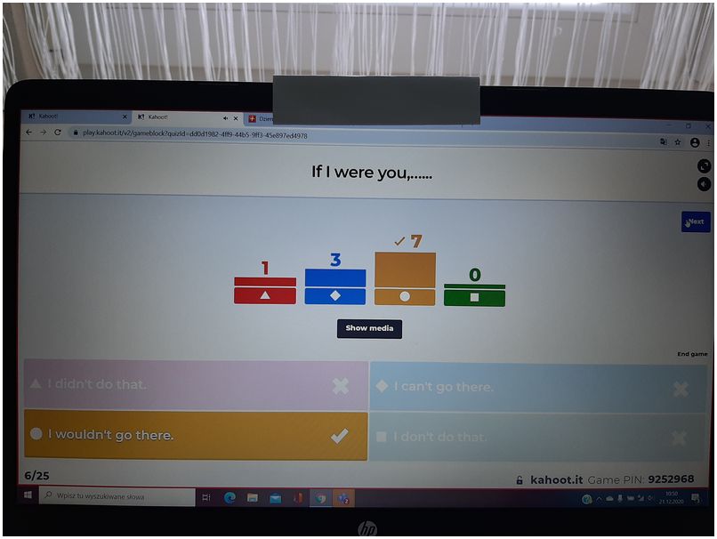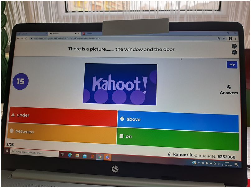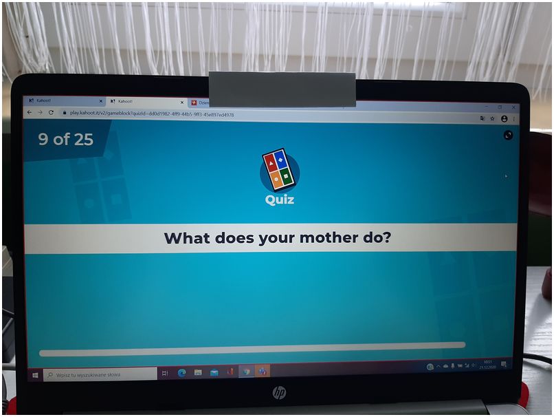 motywowanie uczniów do nauki, doskonalenie ich umiejętności językowych, promowanie postawy odpowiedzialności za proces samodzielnego uczenia się i rozwijania umiejętności językowych. Test konkursowy składał się z 25 pytań zamkniętych, a był przeprowadzony przy pomocy platformy KAHOOT! i aplikacji Teams. Uczestnicy mieli 30 sekund na zaznaczenie poprawnej odpowiedzi.