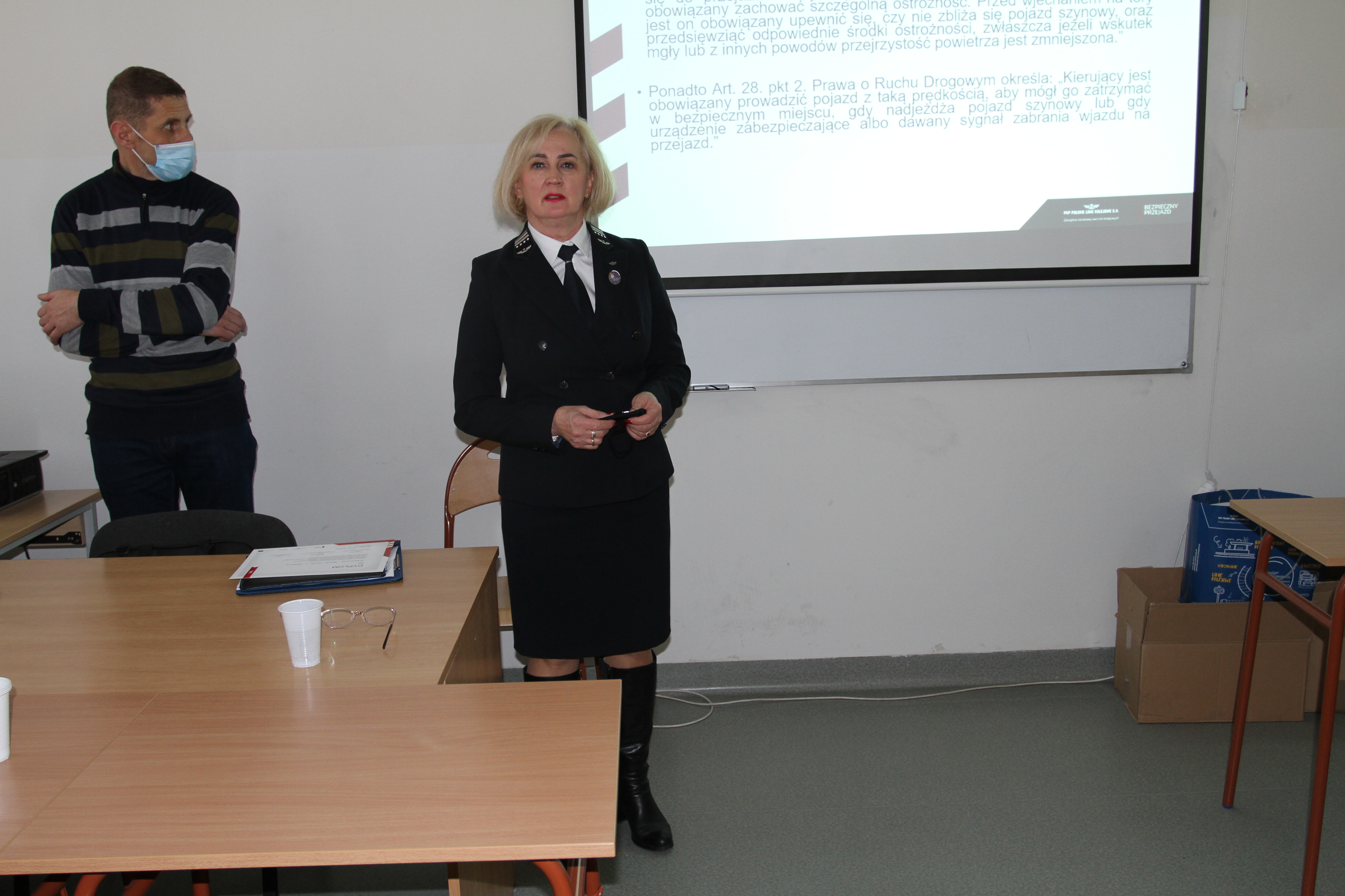 Uczniowie klas Technikum Transportu Kolejowego mieli niepowtarzalną okazję, by zapoznać się z ogólnopolską kampanią, uświadamiającą czym kończy się brawura i lekkomyślność kierowców. Nie ma dnia, by media nie informowały o tragedii na torach. Rocznie to ponad 200 zdarzeń, z czego do ok. 99 proc. dochodzi z winy użytkowników aut. Pani Lidia Franczyk zachęcała uczniów, by zostali ambasadorami akcji i promowali wśród rówieśników bezpieczne zachowania na kolei. Warto dodać, że było to kolejne spotkanie w szkole poświęcone tej problematyce. Okazuje się ona na tyle atrakcyjna dla młodzieży, że jeden z uczniów, Patryk Kowalski, pod kierunkiem nauczycieli zawodu przygotowuje filmy dokumentujące niebezpieczne sytuacje i bezmyślne zachowania kierowców i pieszych na torach.
