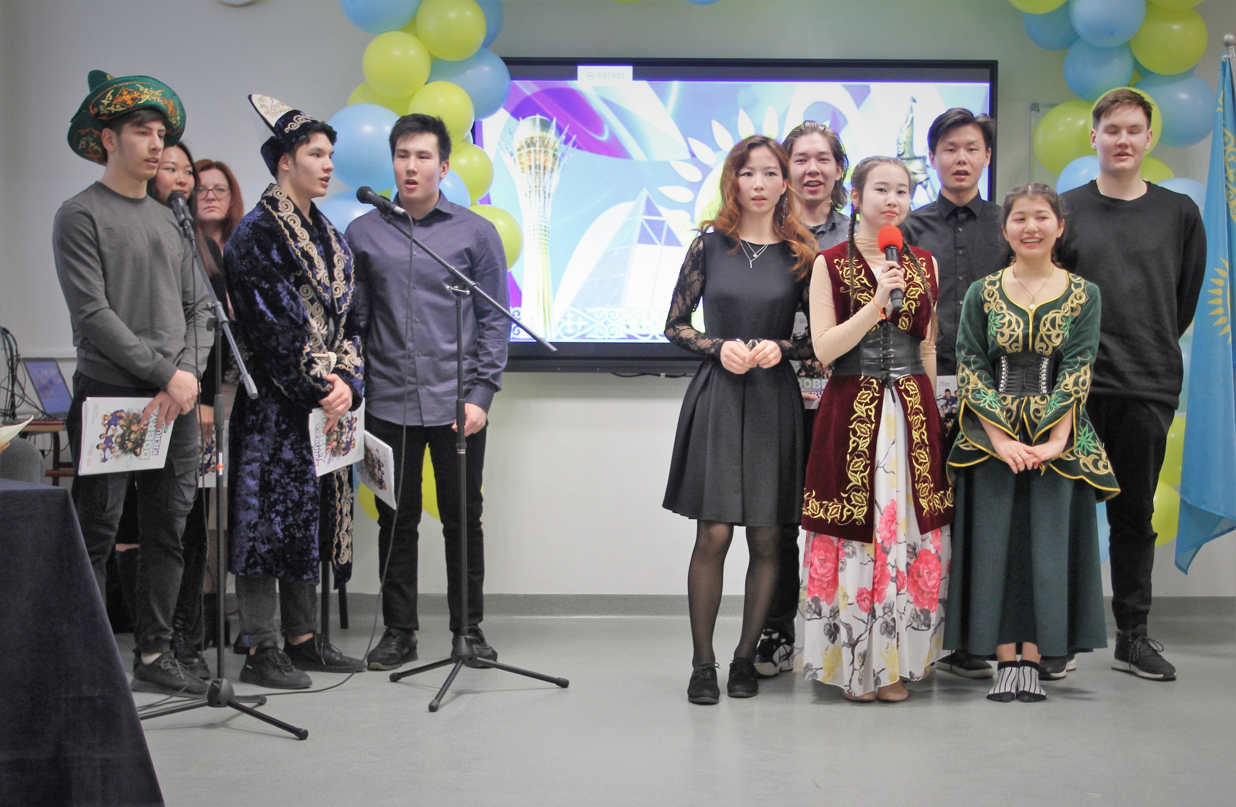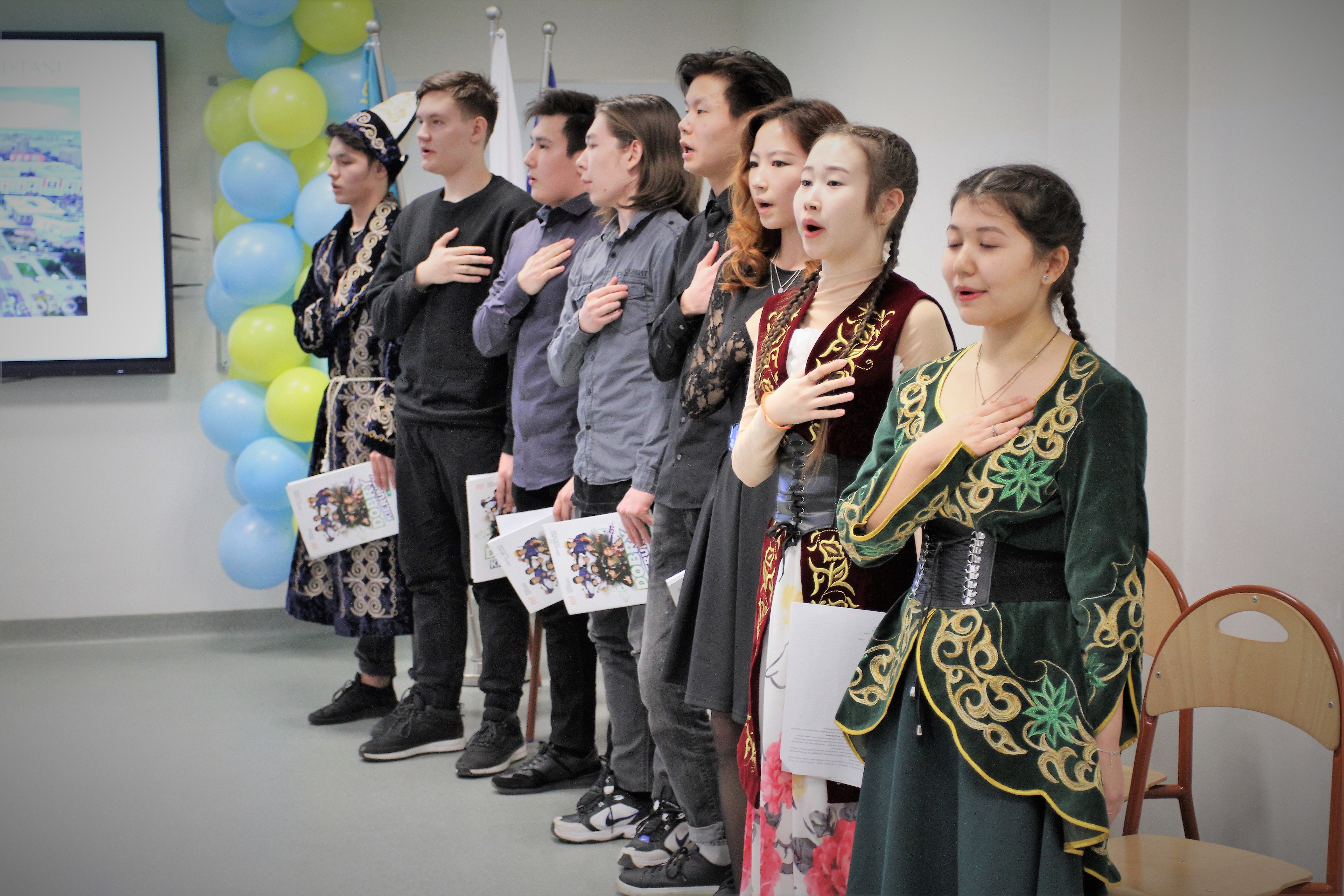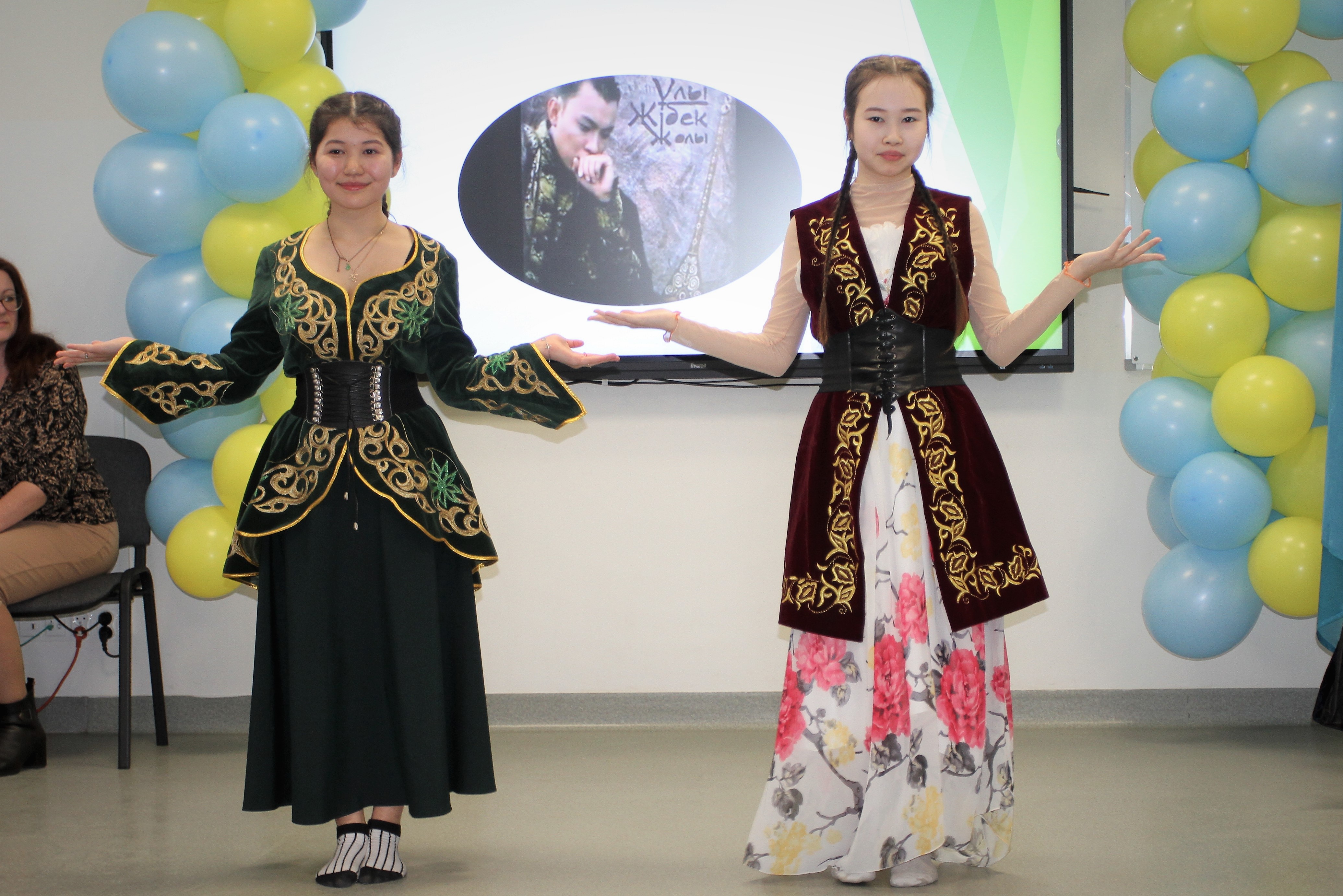 Po prawdziwej uczcie duchowej przyszła pora na „coś” dla podniebienia. Wśród degustowanych smakołyków kuchni kazachskiej znalazły się m. in. manty, czyli tradycyjne pierożki, danie pod nazwą plow, „pięć palców” i bursaki przypominające nasze racuszki. Na zakończenie dyrektor szkoły Katarzyna Kołodziejska pogratulowała pomysłu Dnia Kultury Kazachstanu, ale i talentu młodzieży, wyrażając radość, że możemy cieszyć się wolnością, czuć się bezpiecznie i żyć w kraju, gdzie można poznawać inne narody współczesnego świata. Pani Dyrektor podziękowała też za przybycie na to wydarzenie grupie studentek z Kazachstanu, aktualnie uczących się w Akademii Finansów i Biznesu „Vistula” w Warszawie. Wszyscy, w geście solidarności z uczniami szkoły, którzy pochodzą z Ukrainy, minutą ciszy uczcili pamięć ofiar konfliktu rosyjsko-ukraińskiego.