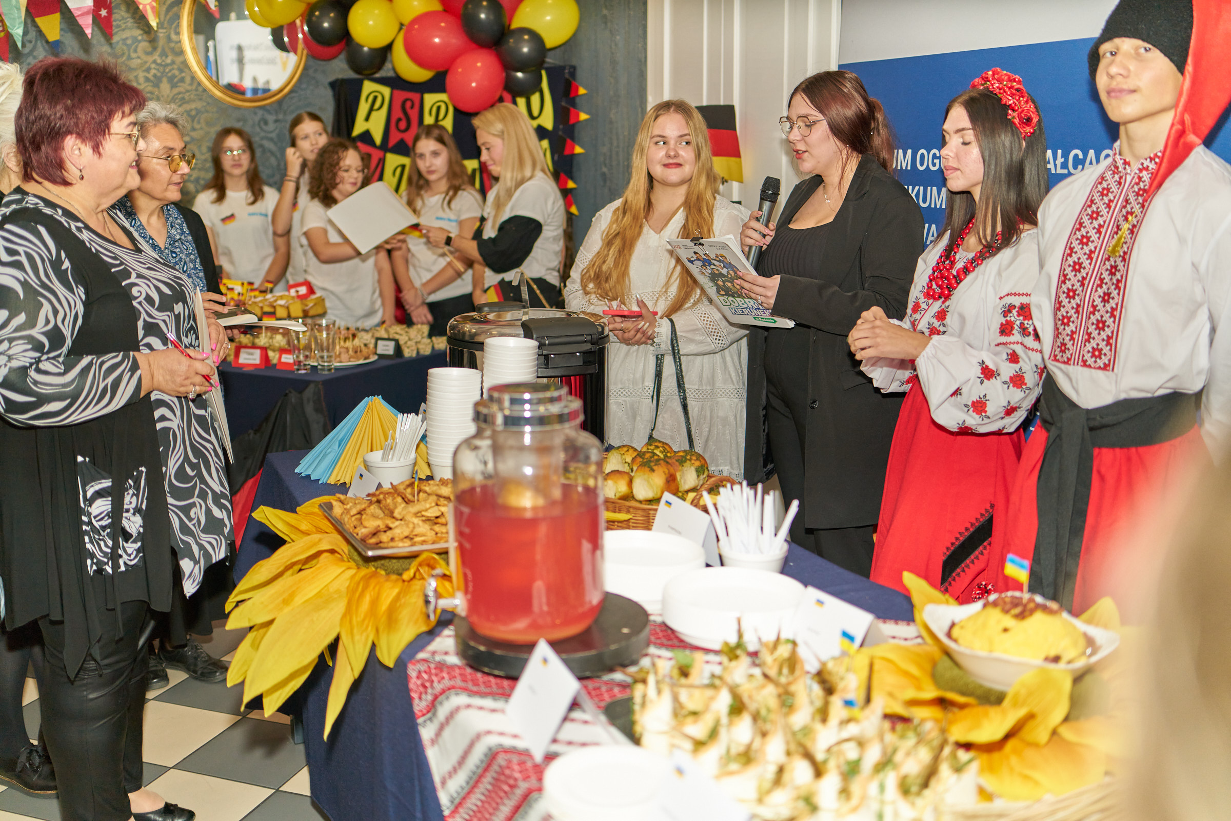 6 października 2023 r. uczniowie klas 2TF, 3TC, 4TC kształcący się na kierunku technik hotelarstwa oraz technik żywienia i usług gastronomicznych wraz z nauczycielami brali udział w projekcie Solidary-Charity-Motivation 20 lat Eurodesk pt. "Wieczór kuchni europejskich". Organizatorem było radomskie Stowarzyszenie Centrum Młodzieży "Arka". Cele konkursu to rozwijanie zainteresowań z zakresu wolontariatu międzynarodowego, promowanie alternatywnych form spędzania wolnego czasu oraz zaprezentowanie potraw kuchni europejskich. Nasi uczniowie przygotowali potrawy charakterystyczne dla kuchni ukraińskiej - kraju, który odpowiednio wcześniej został wylosowany. Jury konkursu oceniało całokształt prezentacji tj. wygląd stoiska, potrawy oraz prezentacja grupy. Nasi uczniowie zajęli 3 miejsce. Gratulujemy.