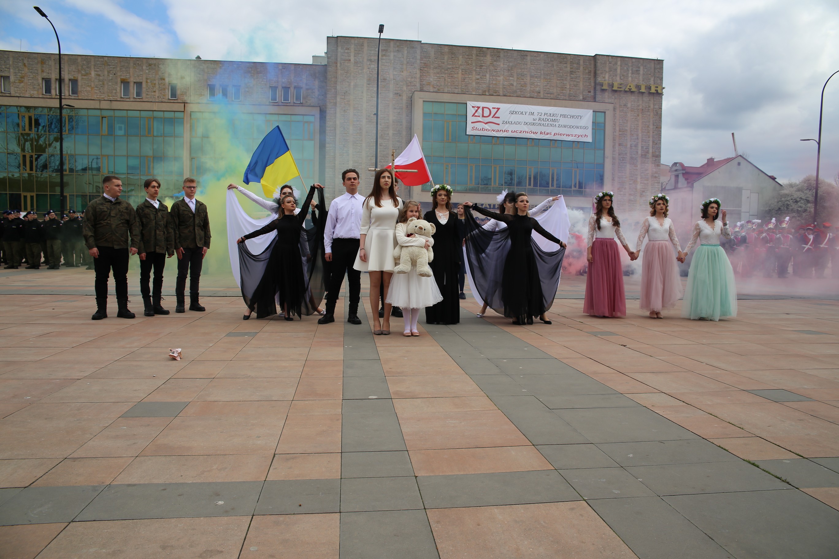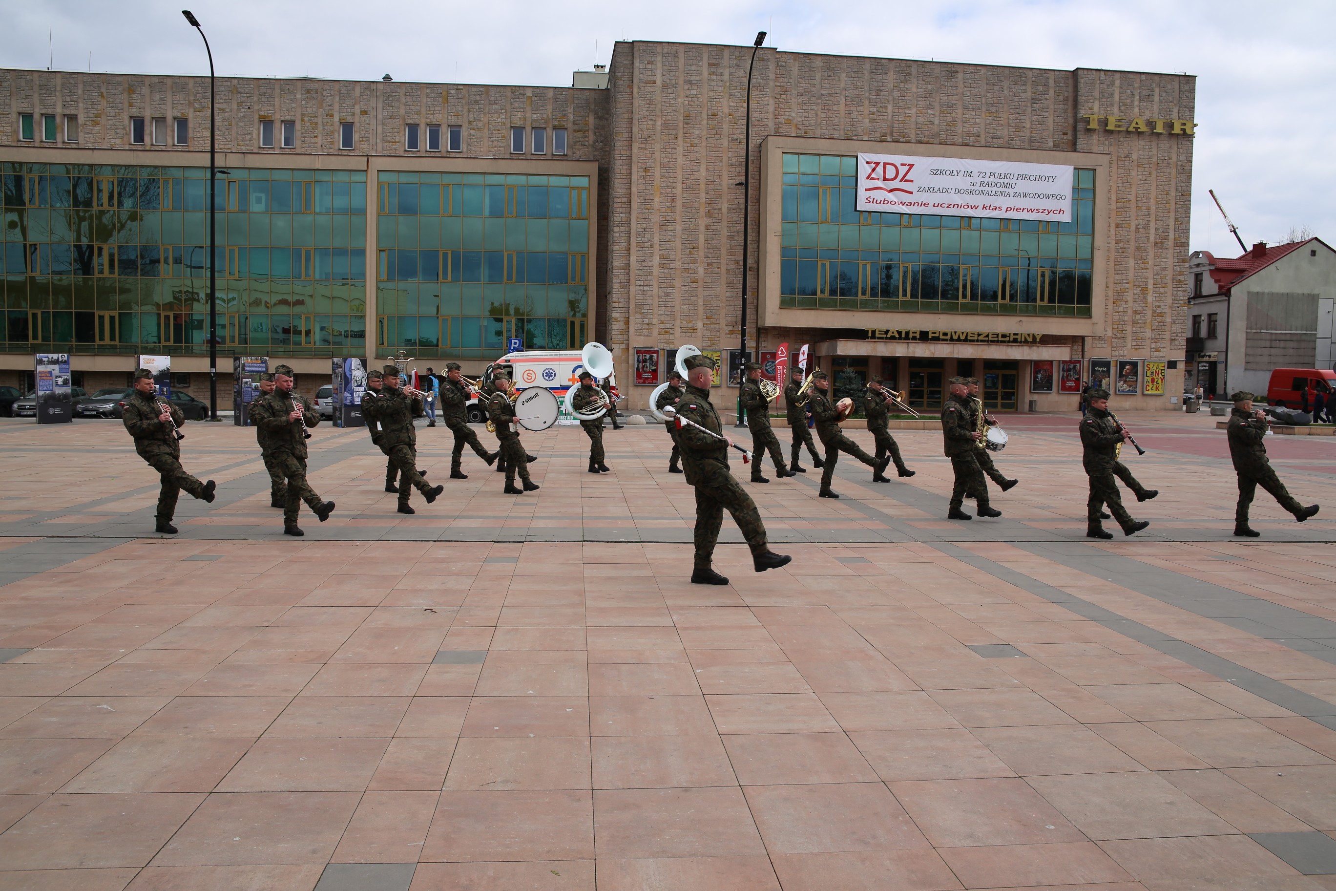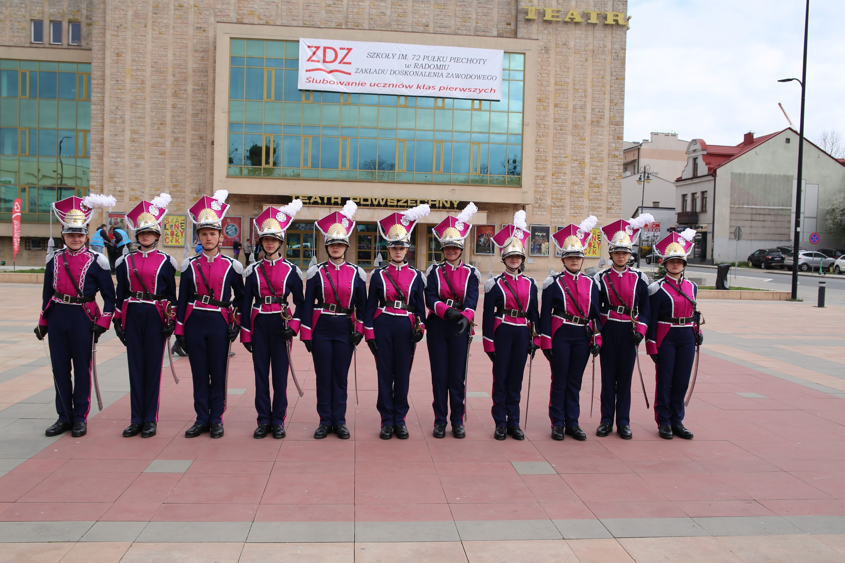 W tym roku przypada 75-lecie Stowarzyszenia Zakład Doskonalenia Zawodowego i 30-lecie działalności edukacyjnej. Akcentów tych nie mogło zabraknąć podczas XII Ślubowania Uczniów Pierwszych Klas Szkół im. 72 Pułku Piechoty w Radomiu, które odbyło się 22 kwietnia 2022 r. Jeden z najważniejszych dni w życiu szkoły rozpoczął się przy pomniku Patrona, 72 Pułku Piechoty, w związku z jeszcze jednym ważnym jubileuszem - 100. rocznicą przybycia do Radomia. Swoją obecnością uroczystość tę uświetniła po raz pierwszy goszcząca w Radomiu Orkiestra Reprezentacyjna Komendy Głównej Policji. Była okazja, by przypomnieć historię 72 PP, przede wszystkim godnie uczcić pamięć żołnierzy i oficerów, którzy zapisali wiele pięknych kart w historii Radomia, a przede wszystkim na polu walk o wolność Ojczyzny. Delegacje złożyły kwiaty. Organizatorem spotkania było Stowarzyszenie Rodzin Żołnierzy i Sympatyków 72 Pułku Piechoty. Następnie w Kościele Garnizonowym, w południe, odprawione zostało nabożeństwo w intencji całej społeczności szkolnej, któremu przewodniczył ks. proboszcz mjr Łukasz Józef Hubacz. Po zakończeniu mszy nastąpiła druga odsłona uroczystości - przemarsz na Plac Jagielloński, gdzie miał miejsce ceremoniał ślubowania młodzieży na sztandar szkoły. Licznie zgromadzeni obserwatorzy, wśród których byli rodzice i mieszkańcy Radomia, mieli możliwość uczestniczenia w jedynym takim wydarzeniu. Stało się tak również za sprawą obecności znamienitych Gości, wśród których byli m.in. Paweł Dycht, przedstawiciel Ministerstwa Obrony Narodowej i osobiście wiceministra Wojciecha Skurkiewicza, poseł Andrzej Kosztowniak, przedstawiciele służb mundurowych oraz władz Radomia: pierwszy zastępca prezydenta Radomia Jerzy Zawodnik i wiceprezydent Katarzyna Kalinowska Uroczystość zaszczycili swoją obecnością: reprezentacja Komendy Mazowieckiej i Miejskiej Policji w Radomiu, Regionalnego Centrum Informatyki w Krakowie, 42 Bazy Lotnictwa Szkolnego w Radomiu, Wojskowej Komendy Uzupełnień, Wojsk Obrony Terytorialnej, Komendy Miejskiej Państwowej Straży Pożarnej, środowiska kombatanckie. W uznaniu dotychczasowego dorobku, Szkoła została uhonorowana okolicznościowymi odznaczeniami i listami gratulacyjnymi. Podziękowania złożyła dyrektor szkoły Katarzyna Kołodziejska, życząc ślubującej młodzieży, by lata nauki były czasem zdobywania kwalifikacji zawodowych, ale też młodzieńczą przygodą. Jak zawsze, ogromne wrażenie zrobiły pokazy umiejętności zawodowych i artystycznych uczniów, przygotowane przez klasy fryzjerskie i kompanię reprezentacyjną klas mundurowych. W programie nie zabrakło widowiskowej defilady pododdziałów. Oprawę muzyczną ślubowania zapewniła Orkiestra Wojskowa z Radomia Na koniec czekał na wszystkich poczęstunek żołnierską grochówką.
