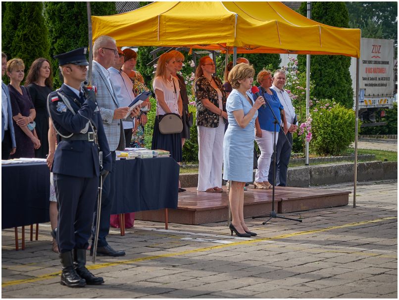 W piątek 25 czerwca 2021r. w Szkołach im. 72 Pułku Piechoty w Radomiu odbyło się uroczyste zakończenie roku szkolnego. Pani dyrektor Katarzyna Kołodziejska podziękowała uczniom i pracownikom za trudny rok nauki i pracy oraz wręczyła wyróżnionym świadectwa z biało czerwonym paskiem. Nagrodę specjalną Dyrektora Szkoły otrzymał Bartłomiej Rogala, za aktywność i zaangażowanie w życie szkoły i czynny udział w działaniach przyczyniających się do utrwalenia pozytywnego wizerunku Szkół im. 72 Pułku Piechoty w Radomiu Zakładu Doskonalenia Zawodowego.