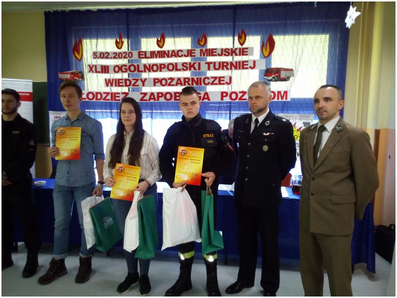 5 lutego 2020 r. w Publicznej Szkole Podstawowej nr 4 w Radomiu odbył się Turniej Wiedzy Pożarniczej pod hasłem " Młodzież zapobiega pożarom" Organizatorami byli: Wydział Edukacji Urzędu Miejskiego, Państwowa Straż Pożarna, Ochotnicza Straż Pożarna w Radomiu, Nadleśnictwo Radom, Związek Emerytów i Rencistów Pożarnictwa RP koło w Radomiu. Naszą szkołę w grupie Radomskich Szkół Średnich reprezentowali: Alicja Rejczak z kl. 1TF oraz Grzegorz Marszałek i Cezary Skorupski – kl. 2LB. Pierwsze miejsce zajął Grzegorz Marszałek, kwalifikując się tym samym do kolejnego etapu - Turnieju Powiatowego który prawdopodobnie odbędzie się 14 marca 2020 r. w Jedlni Letnisko). Czarek i Alicja na 7 miejscu. Naszemu koledze gratulujemy zwycięstwa.