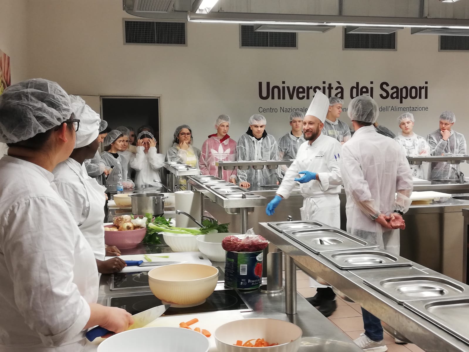 Od poniedziałku do piątku brali udział w zajęciach językowych włosko-angielskich organizowanych w Universita dei Sapori, które prowadził native speaker z Bristolu Pan Christopher. Oprócz zajeć językowych młodzież polska miała okazję poznać kulturę i tradycje Włoch a w szczgólności regionu Umbria od strony kuchni, przygotowując potrawy wspólnie z uczniami uniwersytetu.