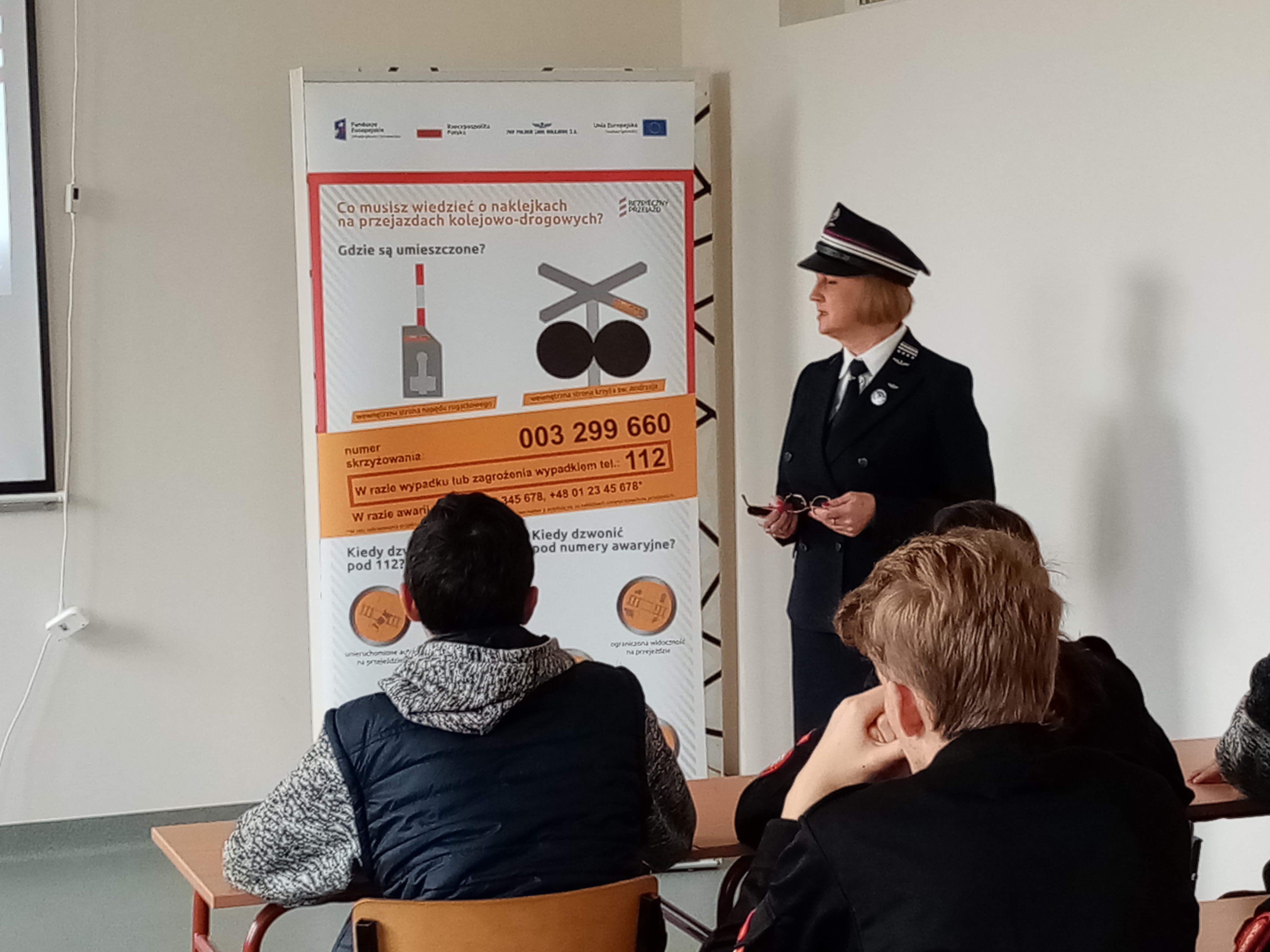 Główną tematykę ciekawych zajęć zdominowały problemy związane z bezpieczeństwem na przejazdach i terenach kolejowych. Jak podkreśliła Pani Koordynator, przy pokonywaniu przejazdów kolejowych zarówno pieszo, jak i samochodem czy rowerem, należy bezwzględnie zatrzymać się i upewnić, czy nie nadjeżdża pociąg. Przeciętna droga hamowania pociągu wynosi od 700 do 1000 m., co powoduje, że osoby przebywające w aucie nie mają żadnych szans na przeżycie w trakcie kolizji. Wiele do myślenia dały prezentacje filmów z kamer przemysłowych, na których zostały zarejestrowane zachowania kierowców, zagrażające im oraz pasażerom pociągu.