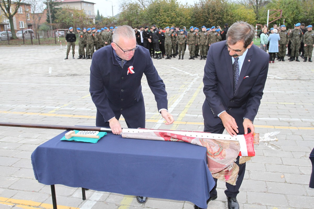 8 listopada 2019 r. społeczność szkolna przeżyła podniosłą uroczystość związaną z Narodowym Świętem Niepodległości. W tym dniu odbył się apel pamięci, którego kulminacyjnym punktem był ceremoniał wbicia gwoździ w replikę sztandaru 72 Pułku Piechoty – patrona szkoły. Zgromadzonych na placu szkolnym uczniów i nauczycieli powitała dyrektor Katarzyna Kołodziejska, dziękując licznie przybyłym gościom za uświetnienie swoją obecnością tej ważnej uroczystości patriotycznej. Wśród nich byli: Łukasz Podlewski – asystent wiceministra Obrony Narodowej Wojciecha Skurkiewicza, delegacja Szkoły Podstawowej w Konopnicy nosząca imię 72 Pułku Piechoty z dyrektorem Michałem Janikiem,, a także fundatorzy repliki sztandaru – lokalni pracodawcy. W apelu uczestniczył również prezes Zarządu Zakładu Doskonalenia Zawodowego w Kielcach, Jerzy Wątroba. W imieniu współgospodarzy uroczystości - Stowarzyszenia Rodzin i Sympatyków Żołnierzy 72 Pułku Piechoty - Andrzej Mędrzycki przekazał młodzieży wykonaną replikę sztandaru osadzoną na drzewcu, wyrażając nadzieję, że będzie to najcenniejszy eksponat szkolnej sali tradycji. Uroczystość zakończyło wręczenie podziękowań inicjatorom i fundatorom wykonania repliki sztandaru. Goście wpisali się do Księgi Honorowej na pamiątkę tego wydarzenia.