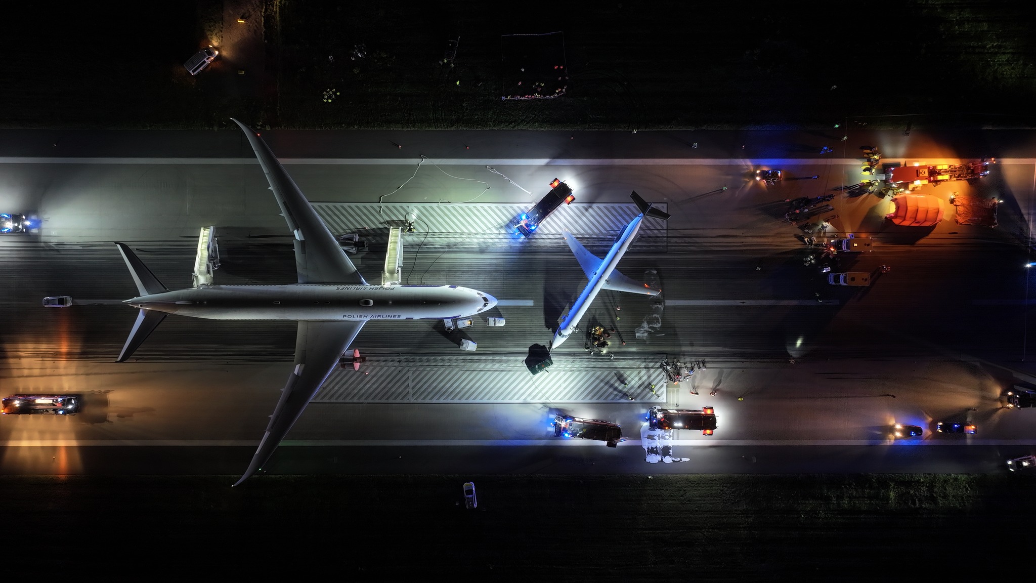 W działaniach zgodnie z zakresem zadań wynikających z PDSZ udział wzięły zarówno służby lotniskowe, jak i miejskie.