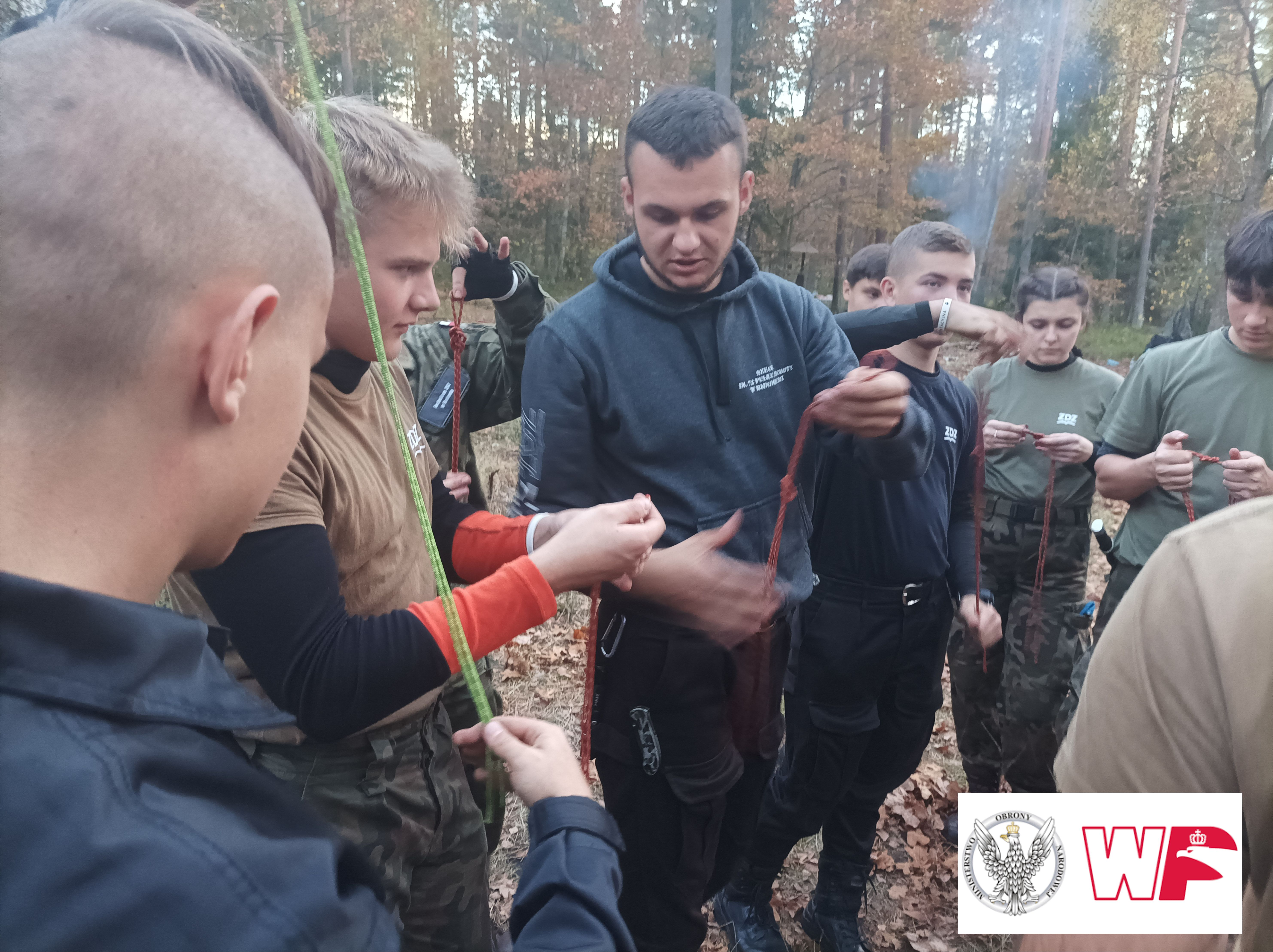 Po przyjeździe na miejsce uczniowie mieli za zadanie znalezienie odpowiedniego miejsca i rozbicie obozów. Program survivalu obejmował poszerzenie wiedzy z zakresu topografii terenu, m.in. zasady działania kompasu oraz busoli, wyznaczanie kierunków na podstawie naturalnych metod, określenie gwiazdy polarnej, zasady korzystania z mapy, azymut oraz określanie odległości. Kolejnym punktem kursu było poznanie techniki pozyskiwania wody oraz jej uzdatnianie. Deszczowa pogoda nie stanowiła przeszkody do udziału w zajęciach praktycznych związanych z rozpalaniem ognisk, podczas których uczestnicy poznali rodzaje rozpałek (naturalne, syntetyczne) i ognisk, takich jak dakota, wigwam, gwiazda, nodia, piramida, sygnalizacyjne, traperskie, szwedzkie. Uczniowie dowiedzieli się także jak rozpalić ognisko w mokrych warunkach. Następnym punktem programu było poznanie rodzajów węzłów: syberyjski, pruski, ósemka, beczka, wyblinka, asekuracyjny. Dwa dni spędzone przez uczniów lesie były bardzo intensywne i zarazem ekscytujące. Niewątpliwie atrakcją było wspólne gotowanie grochówki, rozmowy przy ognisku oraz noc pod gołym niebem. Podsumowując, mimo iż warunki pogodowe nie były łatwe, to wszyscy uczestnicy wrócili z zadowoleniem i z pewnością bogatsi o nową praktyczną wiedzę.