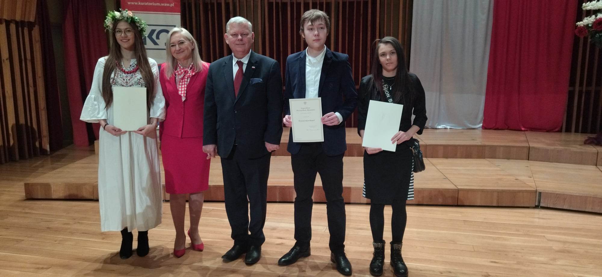W poniedziałek, 5 grudnia w Zespole Szkół Muzycznych im. Oskara Kolberga w Radomiu, odbyło się wręczenie Stypendiów Prezesa Rady Ministrów. Aby zostać stypendystą, uczeń musiał wykazać się wysokimi wynikami w nauce oraz mieć wzorowe zachowanie. Stypendium Prezesa Rady Ministrów otrzymało 97 uczniów z Radomia i regionu. Szkoły im. 72 Pułku Piechoty reprezentowały uczennice: Alicja Rejczak oraz Zuzanna Kubiak (Technikum), Aleksandra Zawadzka (Liceum Ogólnokształcące). Gratulujemy tak świetnych wyników!
