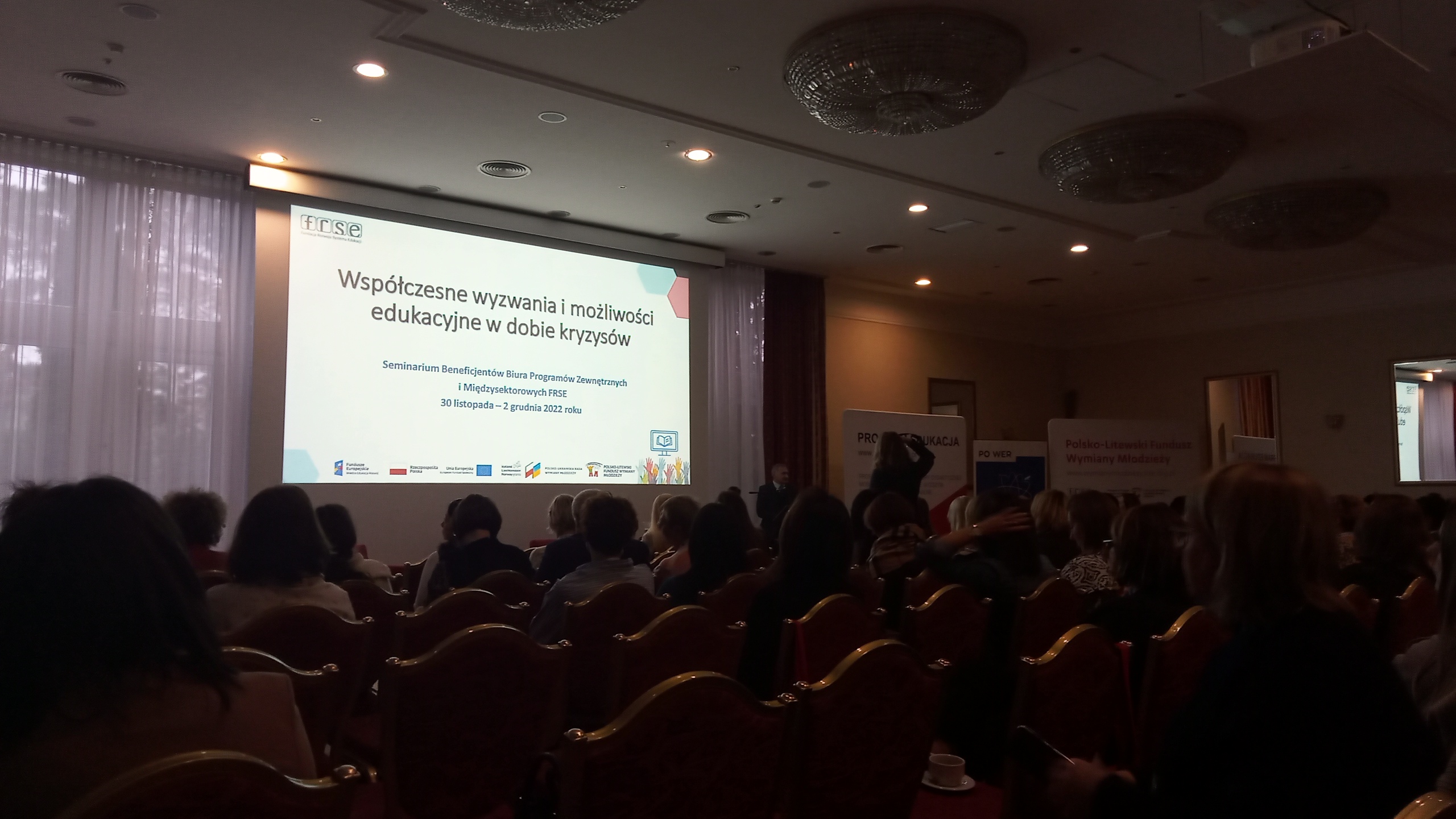 W dniach 30. 11 - 2.12. 2022 zespół do spraw Projektów Unijnych miał przyjemność uczestniczyć w II edycji seminarium pt. "Współczesne wyzwania i możliwości edukacyjne w dobie kryzysów" organizowanym przez Biuro Programów Zewnętrznych i Międzysektorowych FRSE. Podczas seminarium podjęte zostały tematy dotyczące m.in. wyzwań i ryzyk mogących pojawić się podczas realizacji projektów, radzenia sobie z porażkami w projektach, ale również dzielenie się swoimi doświadczeniami i sukcesami.