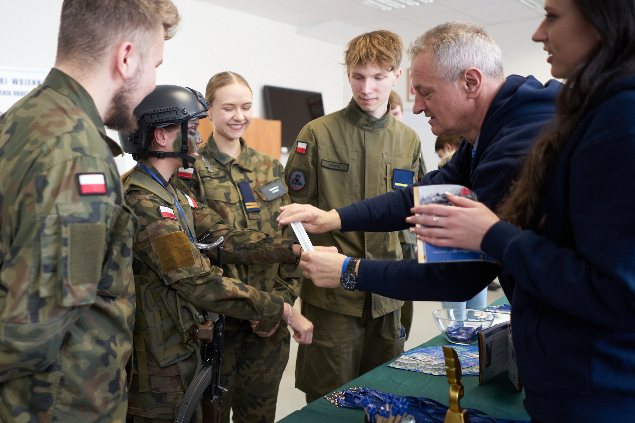 Jako pierwsza szkoła w Radomiu i subregionie radomskim, która wprowadziła do swojej oferty edukacyjnej kształcenie w klasach mundurowych, zostaliśmy wyróżnieni zaszczytną rolą gospodarza i partnera organizacyjnego I Wojskowych Targów Służby i Pracy. Targi otworzyli uroczyście Wojciech Skurkiewicz, sekretarz stanu w Ministerstwie Obrony Narodowej oraz płk dr Zdzisław Małkowski - szef Mazowieckiego Ośrodka Centralnego Wojskowego Centrum Rekrutacji jako główni organizatorzy. Wśród honorowych gości była Mazowiecka Kurator Oświaty Aurelia Michałowska. Następnie przez dwa dni młodzież szkolna, a także dorośli mieszkańcy Radomia i woj. mazowieckiego zwiedzali stoiska wystawców, rozmawiali z żołnierzami wszystkich rodzajów sił zbrojnych, rekruterami do służby wojskowej, studentami uczelni kształcących kadry dla polskiej armii. Swoje stoisko miały Szkoły im. 72 Pułku Piechoty, prezentując dorobek i możliwości kształcenia w klasach Oddziału Przygotowania Wojskowego we współpracy z Ministerstwem Obrony Narodowej. Nie lada atrakcją były pokazy nowoczesnego sprzętu wojskowego. Do Radomia został przetransportowany pojazd opancerzony Rosomak, można było podziwiać czołg Leopard, pojazd specjalny straży pożarnej, wozy dowodzenia, symulator dachowania samochodów i inne. Na chętnych czekała wirtualna strzelnica i żołnierska grochówka prosto z kotła. W programie nie zabrakło koncertu Orkiestry Wojskowej z Radomia, wystąpił też zespół artystyczny z Grójca, odbyły się pokazy musztry. Targi okazały się bardzo ciekawą inicjatywą, życzliwie przyjętą przez lokalną społeczność. Przy pięknej słonecznej pogodzie, stoiska i plenerowe pokazy odwiedziły tłumy fanów polskiego wojska nie tylko z Radomia.