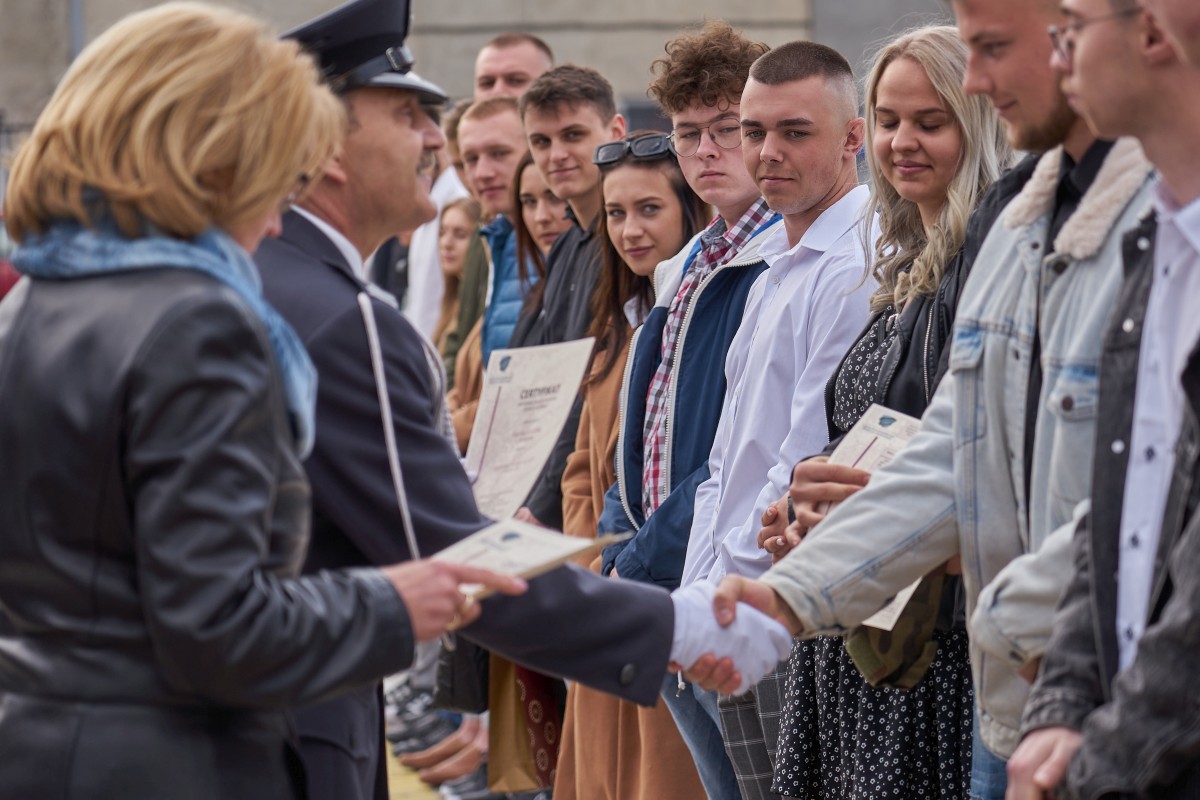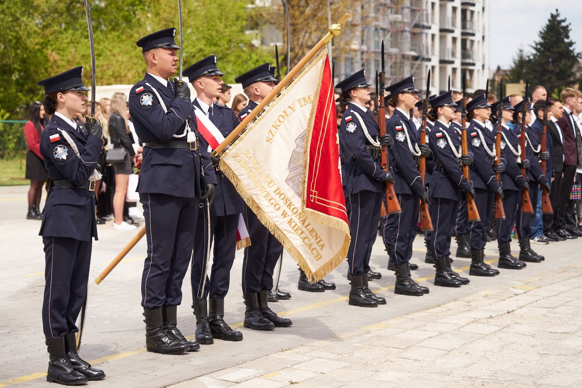28 kwietnia 2023 r. społeczność szkolna w uroczystej oprawie pożegnała tegorocznych absolwentów. Naukę zakończyli uczniowie klas czwartych Liceum Ogólnokształcącego, czwartych i piątych Technikum oraz drugiej Branżowej Szkoły I stopnia. Podczas apelu na placu szkolnym dyrektor Katarzyna Kołodziejska podziękowała młodzieży za wspólny czas, lata edukacji w szkole i zaangażowanie w działalność społeczną, gratulując prymusom bardzo dobrych wyników. Czekały na nich świadectwa z czerwonym paskiem oraz nagrody rzeczowe. Wielu uczniów oraz ich rodzice odebrali listy gratulacyjne od Dyrekcji. Natomiast absolwenci klas mundurowych otrzymali specjalne certyfikaty zaświadczające o ukończeniu „Edukacji policyjnej”, a także „Edukacji wojskowej”. Grupa abiturientów, którzy uczęszczając do technikum wybrali Oddziały Przygotowania Wojskowego, zakończyła naukę z zaświadczeniem o udziale w prestiżowym programie „Certyfikowane wojskowe klasy mundurowe” Ministerstwa Obrony Narodowej. Gościem uroczystości był ppłk Sławomir Głowiński, komendant Wojskowego Centrum Rekrutacji w Radomiu. Na koniec młodzież udała się po raz ostatni do sal lekcyjnych na spotkanie ze swoimi wychowawcami, by odebrać świadectwo ukończenia szkoły. Tuż po długim majowym weekendzie, 4 maja, rozpoczną się egzaminy maturalne. Wszystkim życzymy wymarzonych tematów i połamania piór!