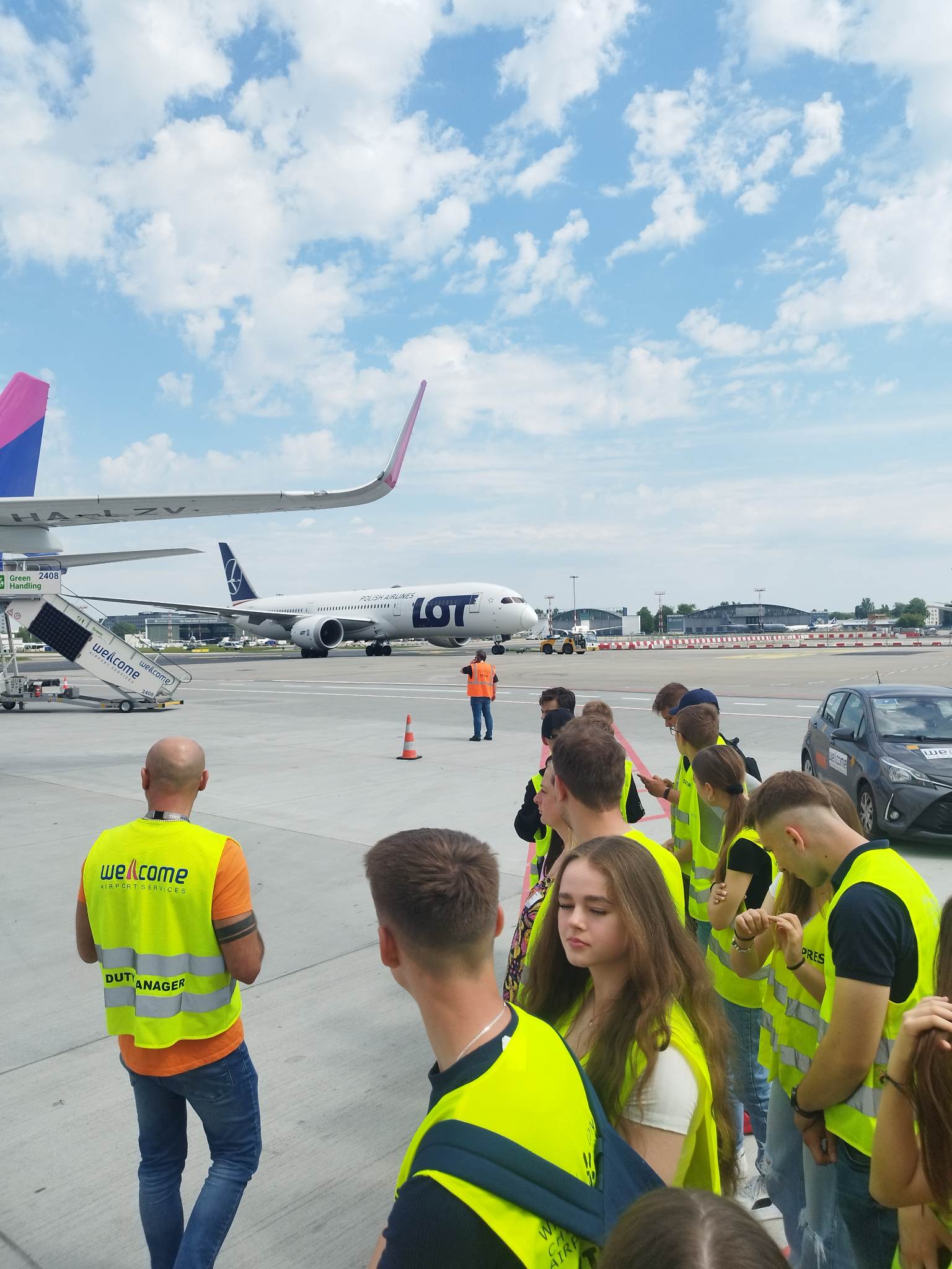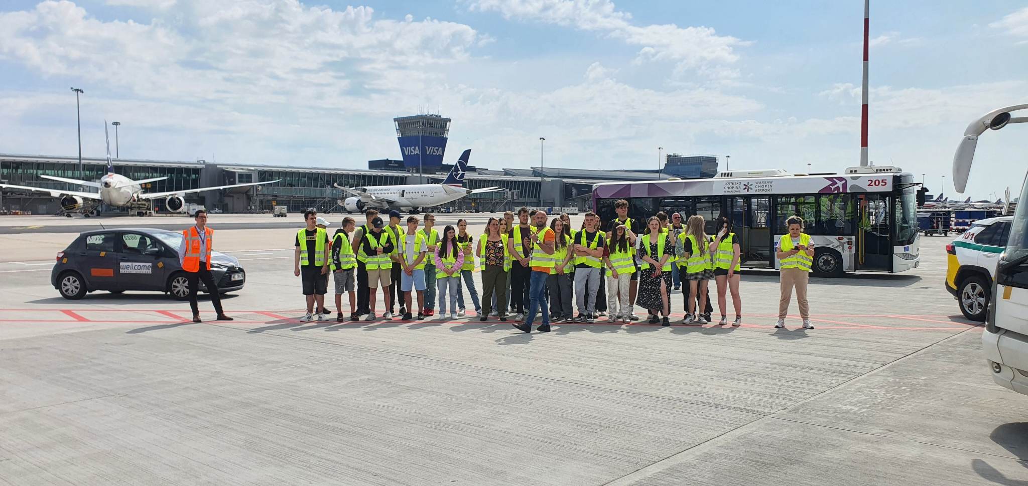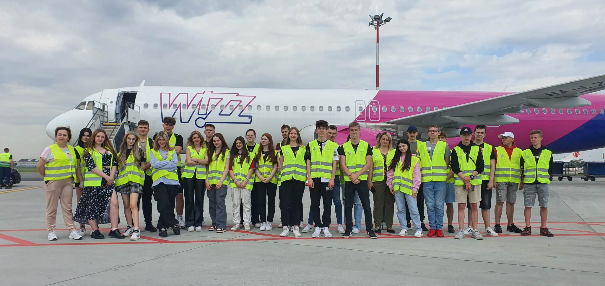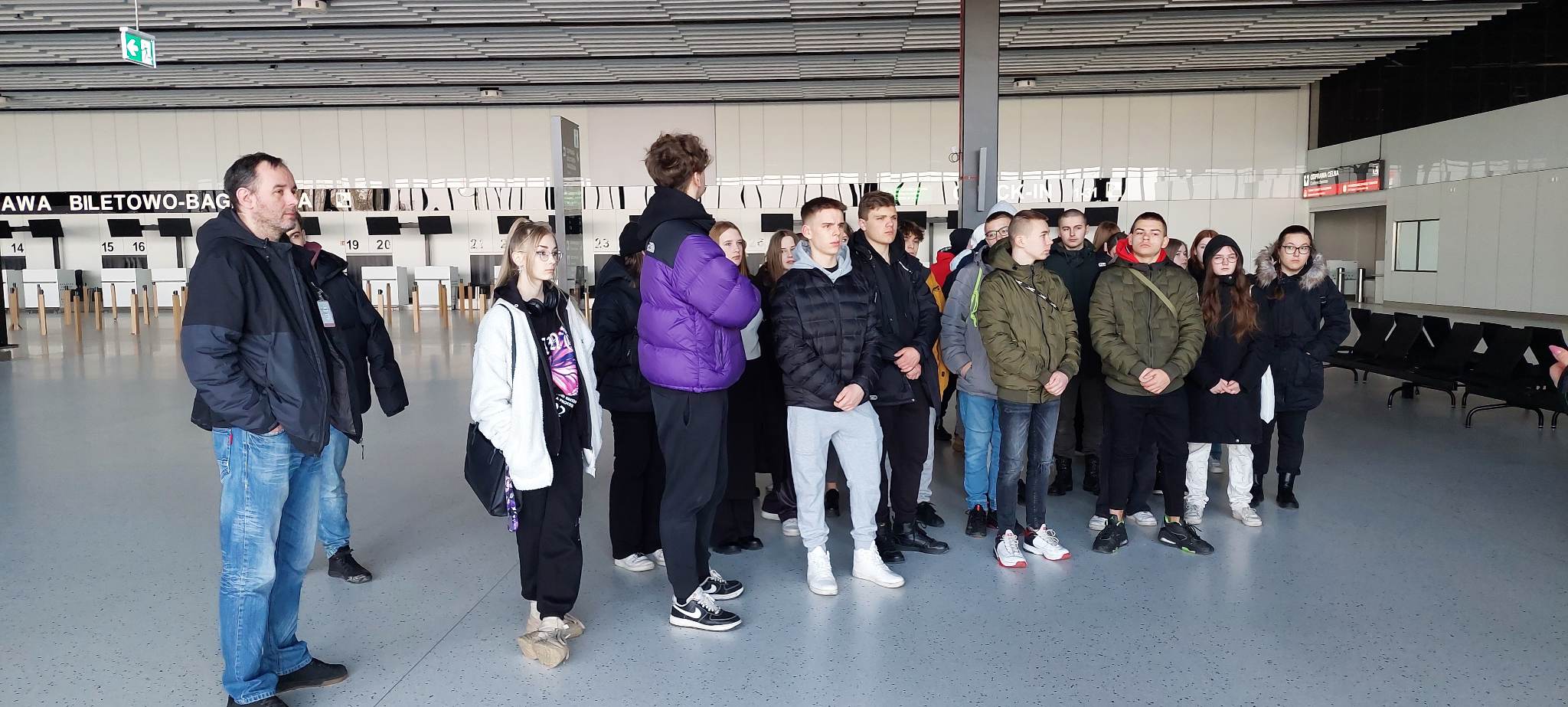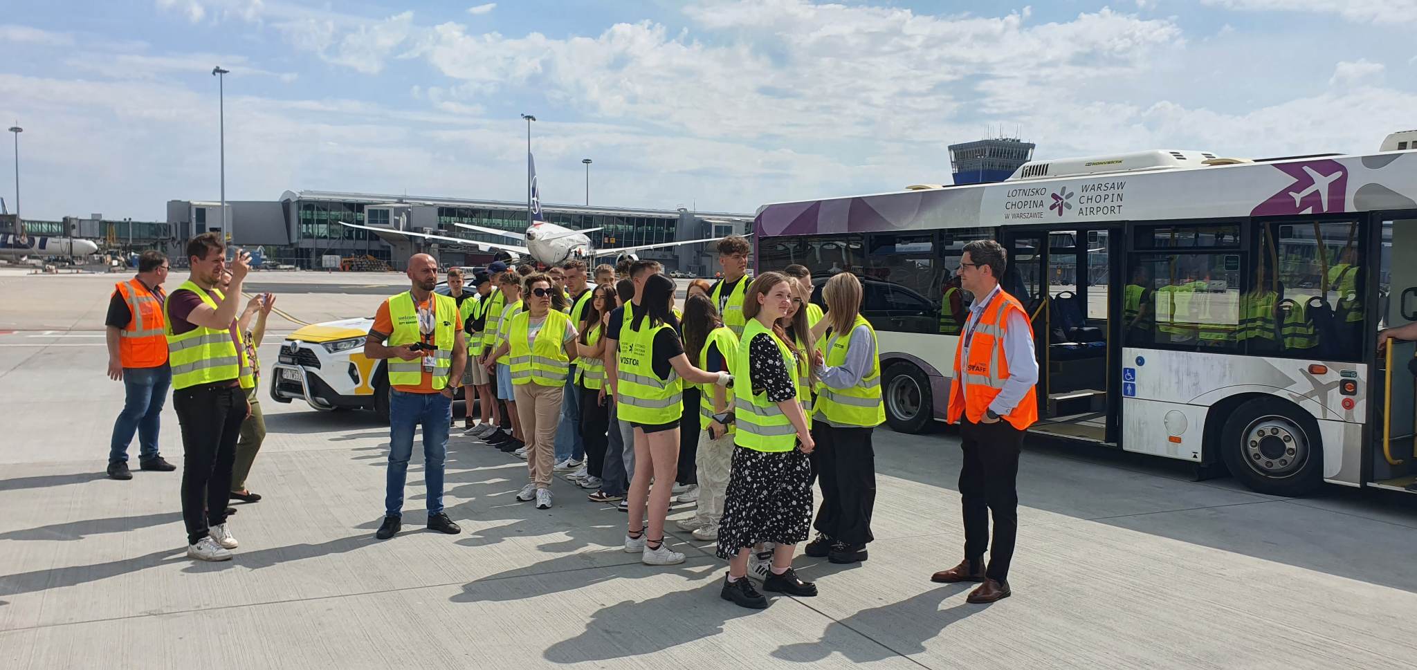 Uczniowie z klas 1td i 2td, którzy kształcą się na kierunku technik lotniskowych służb operacyjnych, uczestniczyli w kolejnym wyjeździe szkoleniowym przybliżającym pracę w wyuczonym zawodzie. 24 maja 2023 r. odbyli wycieczkę do portu lotniczego im. Fryderyka Chopina na warszawskim Okęciu. Młodzież zapoznała się ze strukturą organizacyjno-kadrową oraz infrastrukturą tego największego w Polsce lotniska, zwiedzając drogę startową, z której odlatują i przylatują samoloty różnych przewoźników. Uczniowie dowiedzieli się również, jakie obowiązki wykonują pracownicy po przylocie i przed odlotem statków powietrznych. Mieli możliwość zobaczyć sprzęt nowoczesnej generacji, która pomaga utrzymać płytę lotniska w należytej czystości. Nie lada atrakcją był pokaz strażacki.