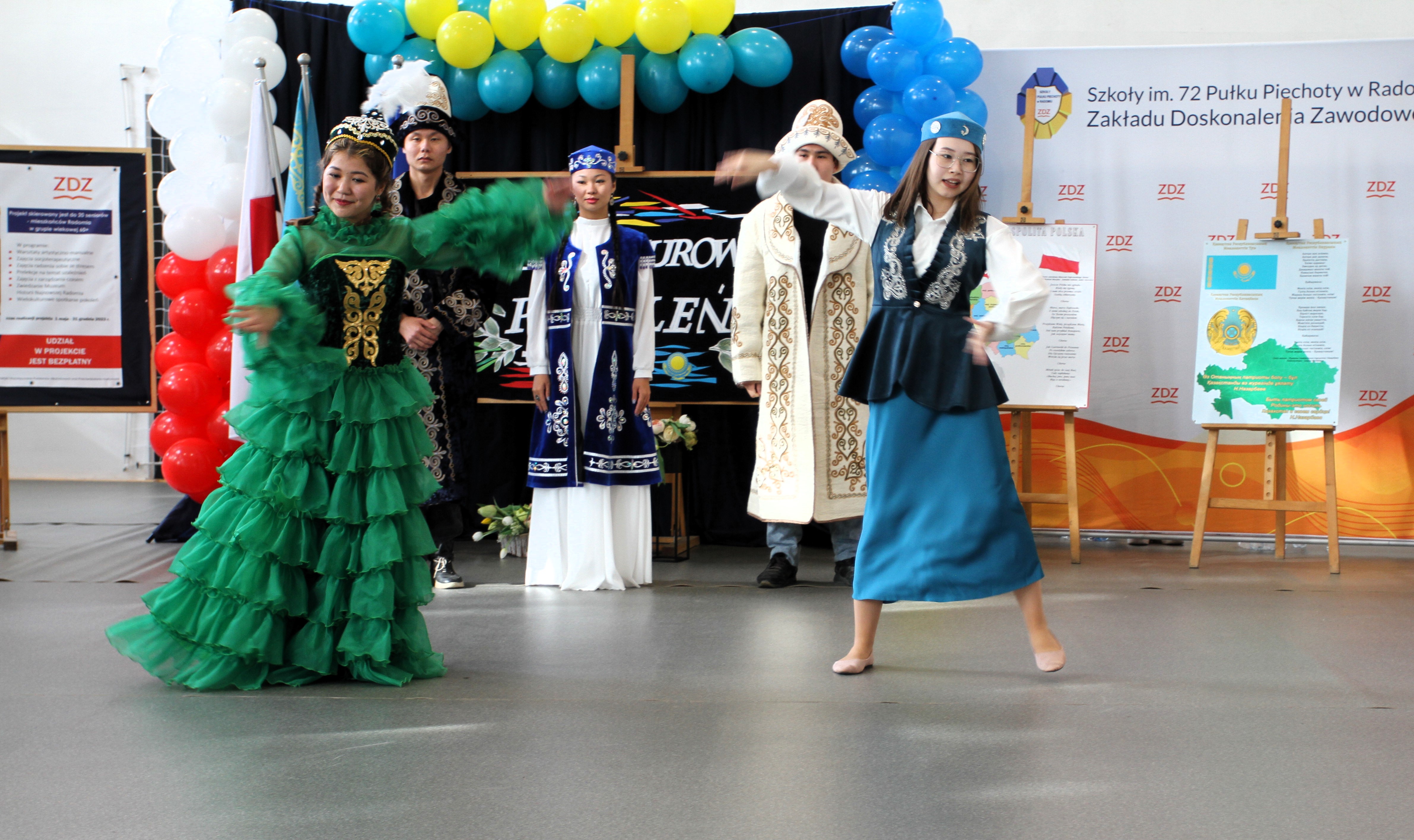 To tytuł projektu, który na zlecenie i ze środków Gminy Miasta Radom realizuje Centrum Kształcenia Zawodowego. W ramach tego działania 11 października 2023 r. odbyło się w Szkołach im. 72 Pułku Piechoty „Wielokulturowe spotkanie pokoleń”. Miejsce wydarzenia nie było przypadkowe. Uczniowie z Polski, Ukrainy i Kazachstanu pod kierunkiem nauczycielki Alony Litwinowej przygotowali program artystyczny, przybliżający kulturę i tradycje tych narodów. Tańce, śpiew, poezja, opowiadane historie złożyły się na to niepowtarzalne spotkanie. Wśród gości nie zabrakło uczestniczek i uczestników miejskiego programu, czyli podopiecznych Domu Pomocy Społecznej im. Św. Kazimierza. Przybyli również przedstawiciele władz samorządowych Radomia, dyrektorzy miejskich placówek opiekuńczych, kombatanci. Jednym z celów projektu było zaangażowanie seniorów w kontakty społeczne, wzrost poczucia akceptacji i bycia potrzebnym w społeczeństwie. Okazją do tego było między innymi spotkanie z młodzieżą szkolną. Dyrektor Domu Pomocy Społecznej Róża Nowak podziękowała dyrektor szkoły Katarzynie Kołodziejskiej za zaangażowanie młodzieży, nauczycieli i pracowników działalności kursowej w realizację zajęć dla seniorów, co zapewne pozostanie na długo w ich pamięci. Spotkanie zakończyła degustacja pysznych potraw narodowych, przygotowanych przez uczniów kierunku Technik żywienia i usług gastronomicznych.