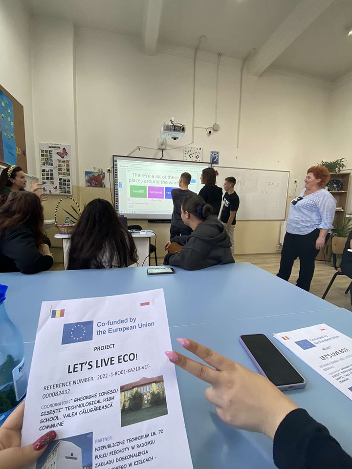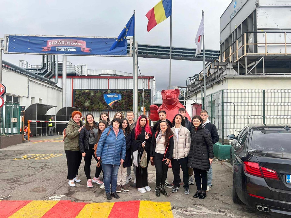 16 października 2023 r. grupa uczniów kierunku Technik żywienia i usług gastronomicznych pod opieką nauczycielek Klaudii Brachy i Anny Mulik udała się do Rumunii, do Liceul Technologic Georghe Ionescu Sisesti z Valea Calugareasca. To w ramach europejskiej współpracy związanej z realizacją projektu „Let’s live eco!”. Podczas tygodniowego pobytu w partnerskiej szkole była okazja do udziału w praktycznych zajęciach i warsztatach kulinarnych. Uczniowie poznali technologię przetwórstwa owoców i warzyw, wykonując soki, dżemy i pasty w oparciu o produkty pozyskane z przyszkolnych ekologicznych sadów. Ciekawym doświadczeniem zawodowym było warzenie bezalkoholowego piwa. Ale projekt ma na celu także nawiązanie przyjaźni koleżeńskich między uczniami, poznanie historii i kultury Rumunii oraz ciekawych miejsc regionu, w którym znajduje się szkoła. Tego wszystkiego nie zabrakło w programie pobytu naszej młodzieży w Rumunii. Pełną serdeczności i gościnności wizytę zakończył uroczysty obiad. Dyrektor Mihaela Barbu nie kryła radości z efektów współpracy, wyrażając nadzieję na jej kontynuację. Warto przypomnieć, że w maju tego roku w Szkołach im. 72 Pułku Piechoty gościliśmy przez tydzień delegację dyrekcji, grona pedagogicznego i uczniów z Liceul Technologic.