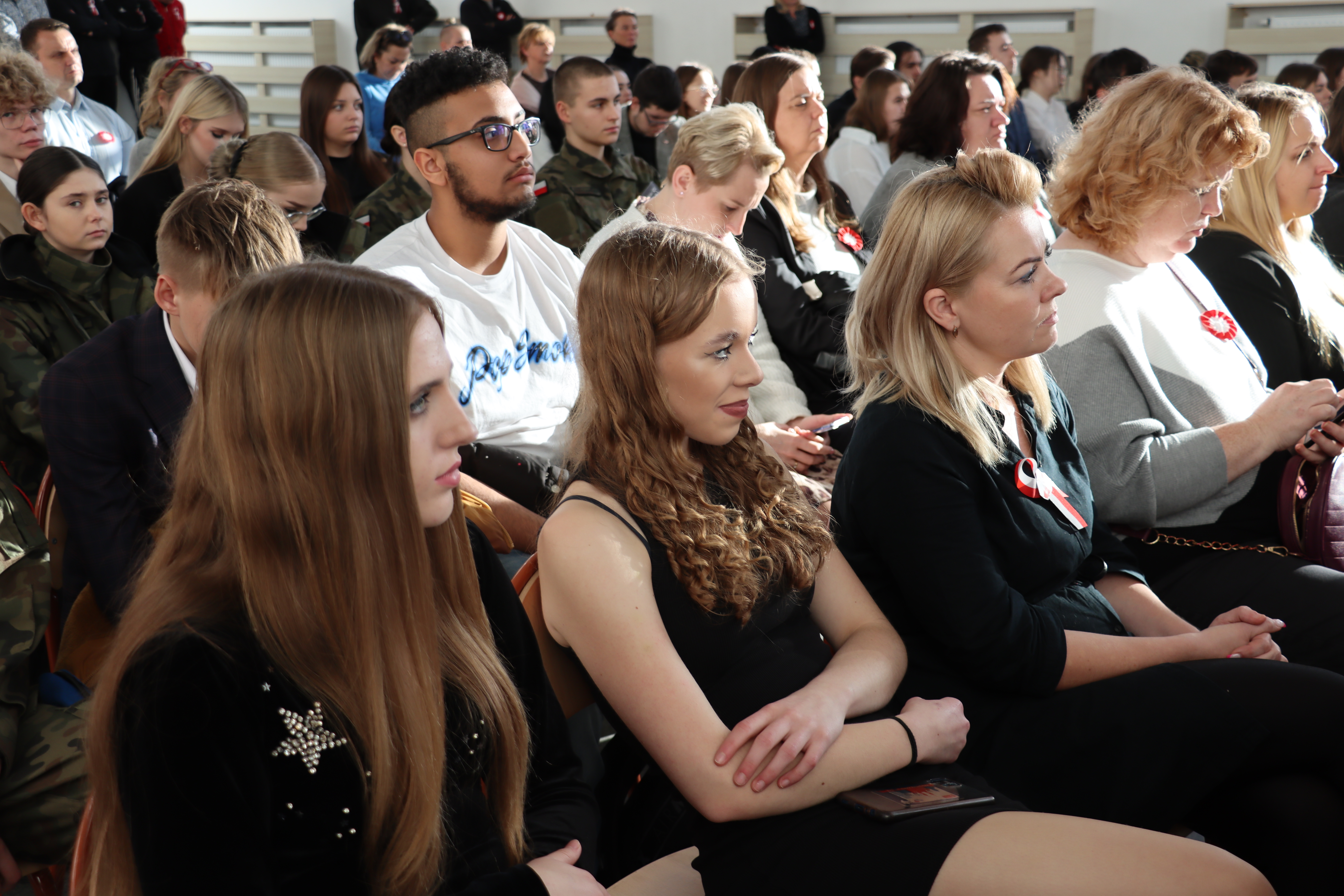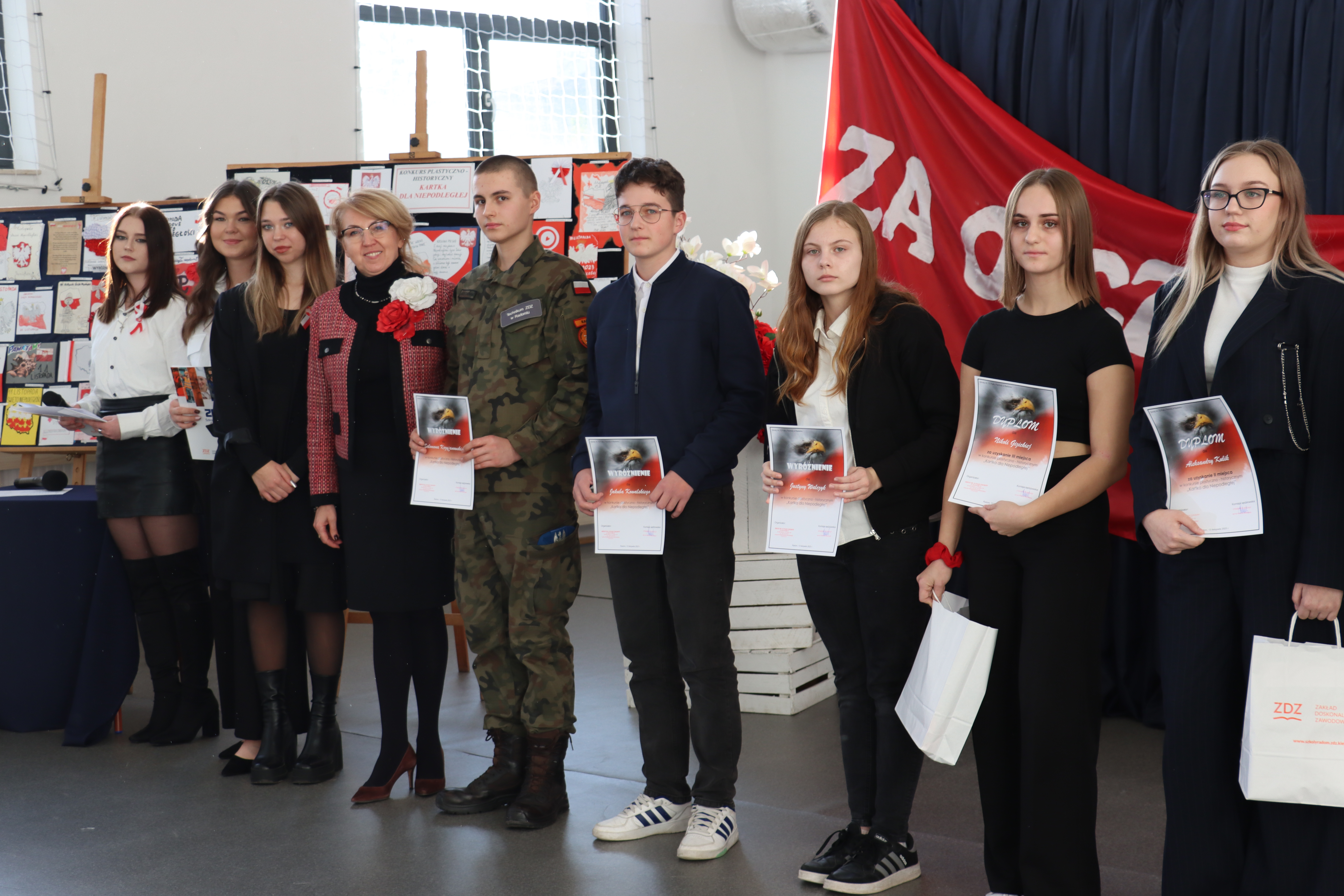 Bardzo uroczyście społeczność szkolna obchodziła 105. rocznicę odzyskania przez Polskę niepodległości. Już 10 listopada 2023 r. szkoła włączyła się do ogólnopolskiej akcji „Niepodległa dla Hymnu” i na placu szkolnym, w asyście kompanii reprezentacyjnej, śpiewaliśmy Mazurka Dąbrowskiego. Wcześniej grupa uczniów zapaliła znicze w patronackich miejscach pamięci: przed pomnikiem Patrona – 72 Pułku Piechoty oraz przy Krzyżu Wolności. Z kolei 11 listopada reprezentacja szkoły wzięła udział w oficjalnych obchodach narodowego święta, odpowiadając na zaproszenie władz miasta, parlamentarzystów i służb mundurowych. Uczniowie wraz z dyrektor szkoły Katarzyną Kołodziejską uczestniczyli w nabożeństwie w radomskiej katedrze, następnie w przemarszu orszaku ulicami miasta i uroczystości przed pomnikiem czynu legionowego w Rynku, składając tam wiązankę kwiatów. 14 listopada w szkole odbyła się okolicznościowa akademia, poprzedzona apelem przeprowadzonym zgodnie z ceremoniałem wojskowym. Następnie na sali gimnastycznej utalentowani artystycznie uczniowie przedstawili okolicznościowy program, nawiązujący tematycznie do Narodowego Święta Niepodległości i dziś pojmowanego patriotyzmu. Wystąpili Gabriela Wojtakowska, Weronika Rdzanek i Kewin Grzywacz, przygotowani pod kierunkiem nauczyciela historii Sebastiana Konopki, a także gorąco przyjęci uczniowie Niepublicznej Szkoły Muzycznej Zakładu Doskonalenia Zawodowego Ryszard Sadza i Miłosz Mazur, przygotowani przez nauczycielki Sylwię Minarz – Płatos i Irynę Borysovą. Finalnym akcentem akademii było rozstrzygnięcie konkursu plastyczno-historycznego „Kartka dla Niepodległej”. Z zorganizowanej wystawy prac wynika, że konkurs przeprowadzony pod kierunkiem nauczycielki plastyki Anety Bernat spotkał się z dużym zainteresowaniem uczniów, a poziom pracy był wysoko. Pierwsze miejsce zajęła Patrycja Rejczak, drugie Aleksandra Kulik, a trzecie Nikola Gizicka. Wyróżnienia otrzymali: Justyna Walczyk, Jakub Kowalski i Salomon Kryzanowski. Pani Dyrektor Katarzyna Kołodziejska gratulując autorom nagrodzonych prac, podziękowała wszystkim, którzy z tak dużym zaangażowaniem uczestniczyli w tegorocznych obchodach święta wolności.