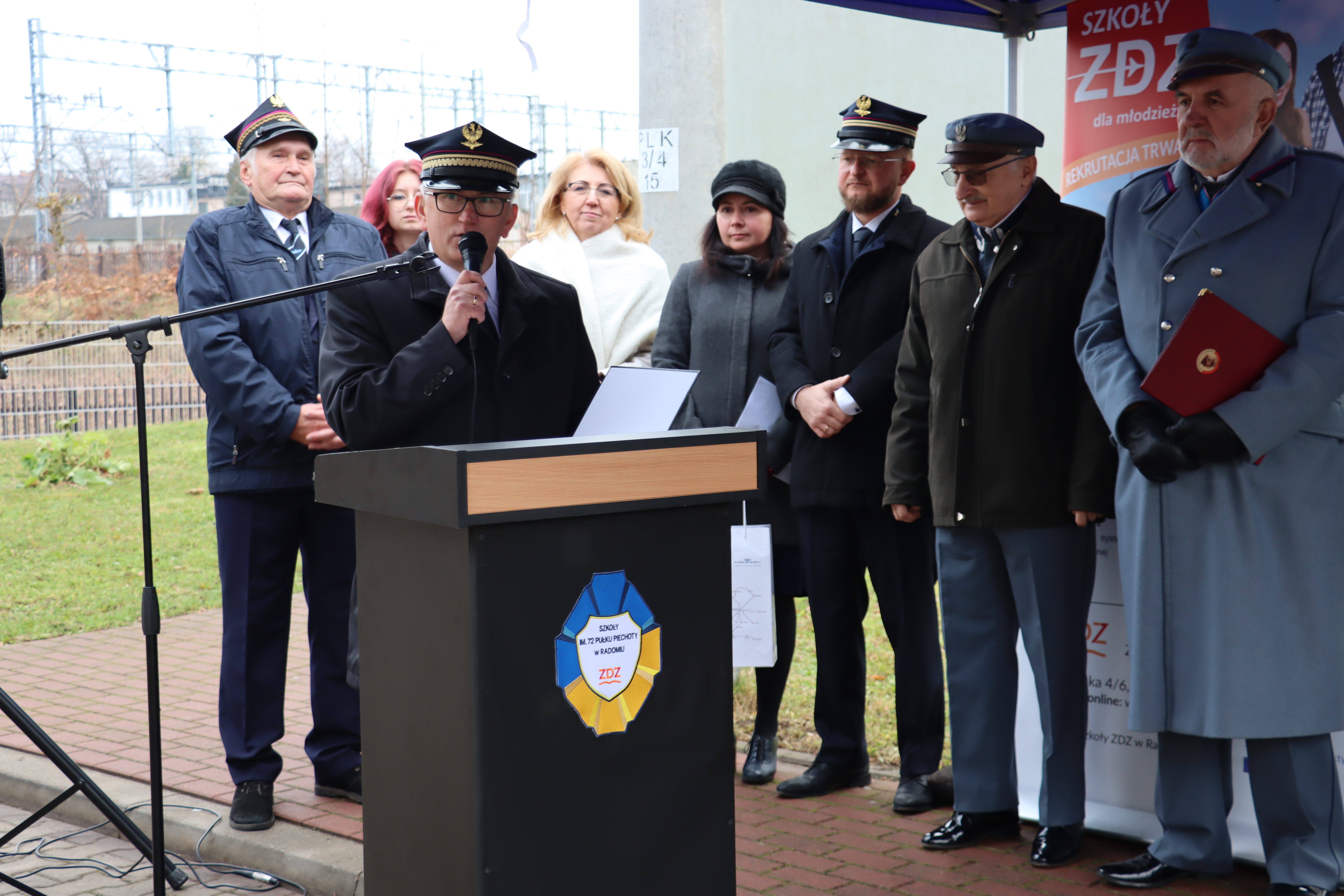 W obecności pocztu sztandarowego życzenia kolejarzom i uczniom, którzy kształcą się na kierunku Technik transportu kolejowego, złożyli m.in. dyrektor Małgorzata Aleksandrow ze spółki Polskie Koleje Państwowe Pkp PLK i Filip Chrzanowski – członek Zarządu PKP Polskie Linie Kolejowe SA.