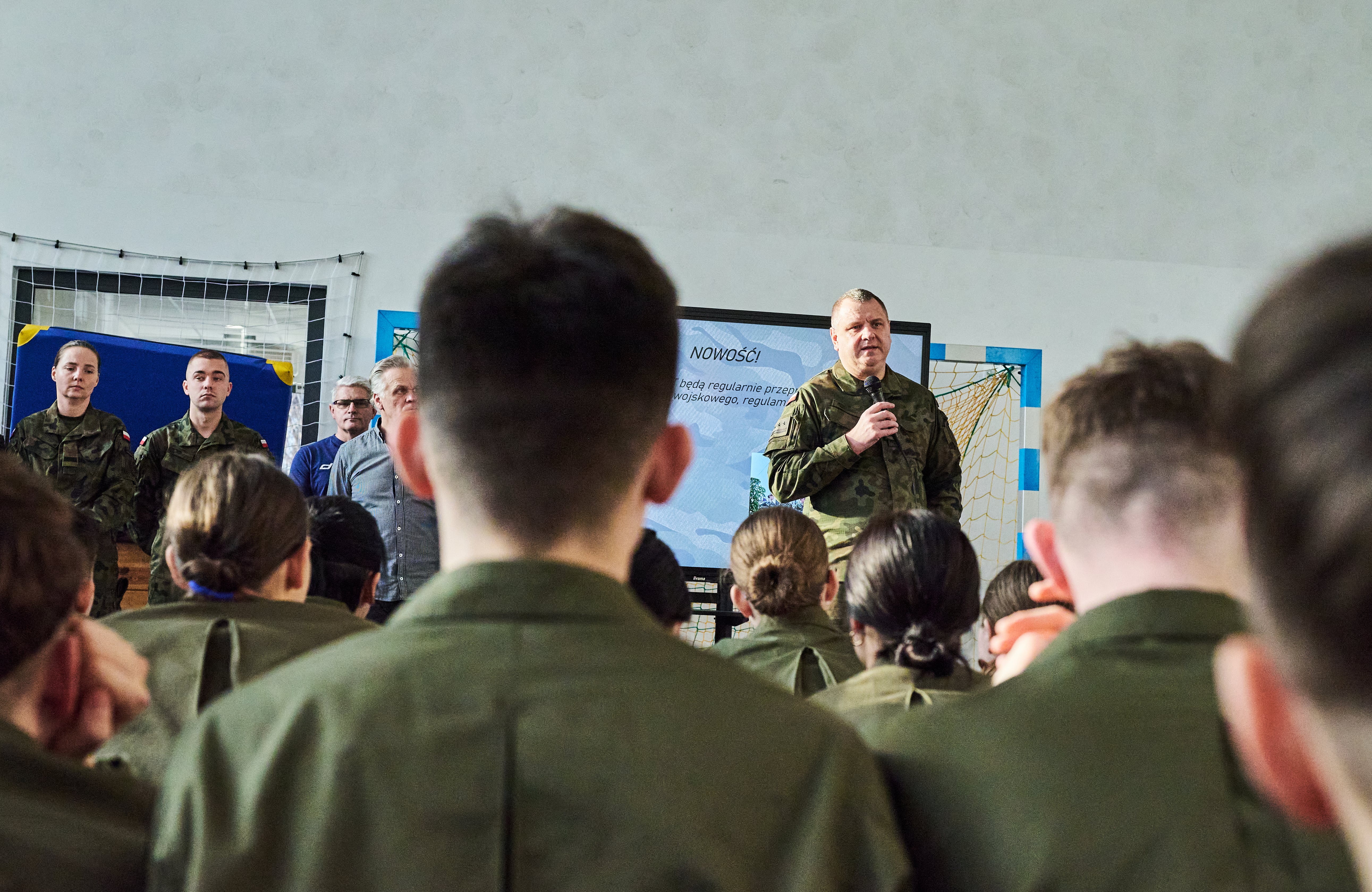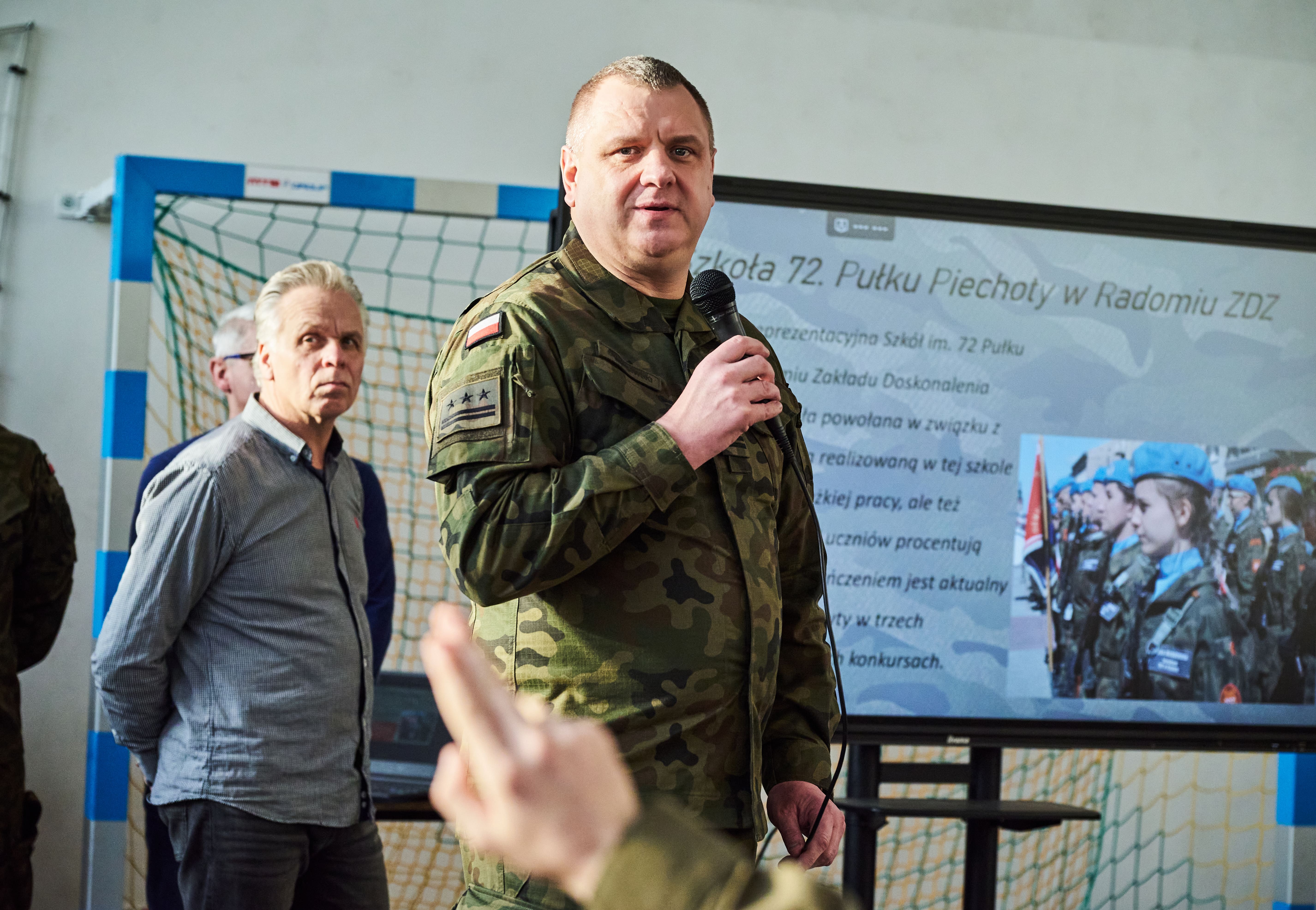 23 stycznia 2025 r. w Szkołach im. 72 Pułku Piechoty odbyło się spotkanie uczennic i uczniów klas mundurowych z przedstawicielami Ośrodka Reprezentacyjnego Wojsk Obrony Terytorialnej i jego komendantem płk. Łukaszem Baranowskim. Pod tak fachowym nadzorem młodzież będzie zdobywać dodatkowe kwalifikacje z zakresu musztry obowiązkowej i paradnej. Działanie to ma związek z tworzeniem nowej kompanii reprezentacyjnej. Nabór trwa.