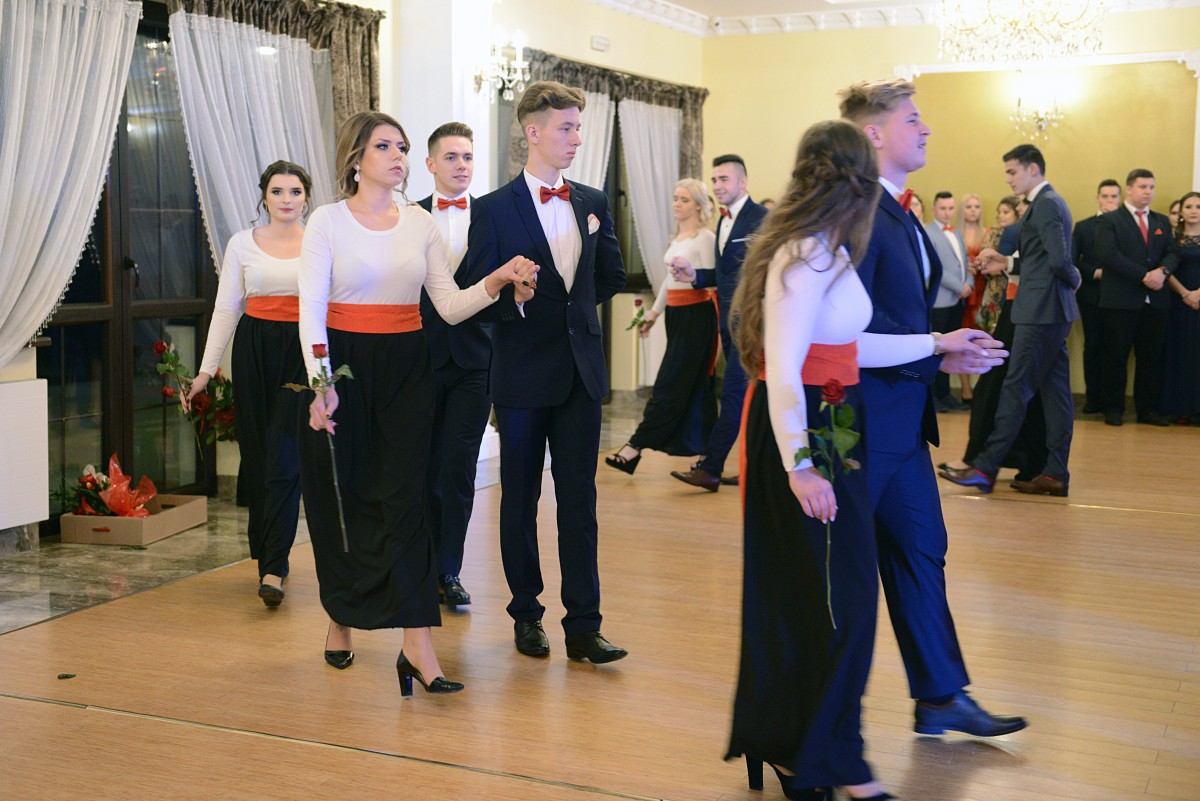 „Jeszcze nie dojrzali, ale już świadomi tego, co nas czeka za 100 dni”. Takie motto przyświecało studniówce tegorocznych maturzystów. Tradycyjny bal na sto dni przed egzaminem dojrzałości z udziałem uczniów pięciu klas maturalnych odbył się w sobotę, 26 stycznia 2019 r. w reprezentacyjnych salach restauracji – hotelu „Ostoja” w Wieniawie. Ten jedyny w życiu wieczór otworzyła dyrektor Szkół im. 72 Pułku Piechoty Katarzyna Kołodziejska. Jednocześnie złożyła tegorocznym maturzystom życzenia niezapomnianych wrażeń ze studniówkowego balu, a w dalszej perspektywie licznych sukcesów i satysfakcji z wyników egzaminu dojrzałości oraz w dalszym życiu zawodowym. – Korzystajcie ze wszystkiego co w życiu jest piękne i wartościowe. Pamiętajcie też, że nawet najskrytsze pragnienia można zrealizować, jeśli tylko konsekwentnie dąży się do celu – zwróciła się do uczniów dyrektor K. Kołodziejska. Wspaniałą zabawę rozpoczął tradycyjny polonez, który zachwycił grono pedagogiczne oraz rodziców. Rychli abiturienci podziękowali wychowawcom i nauczycielom pięknym słowem i kwiatami za przekazaną wiedzę podczas lat nauki w szkole, wyrozumiałość, troskę o to, by lata pobytu w szkole na trwale zapisały się jak najlepiej w pamięci. Potem już trwała zabawa do białego rana. Tym samym rozpoczęła się ostatnia prosta i odliczanie przed jednym z najważniejszych egzaminów w życiu…