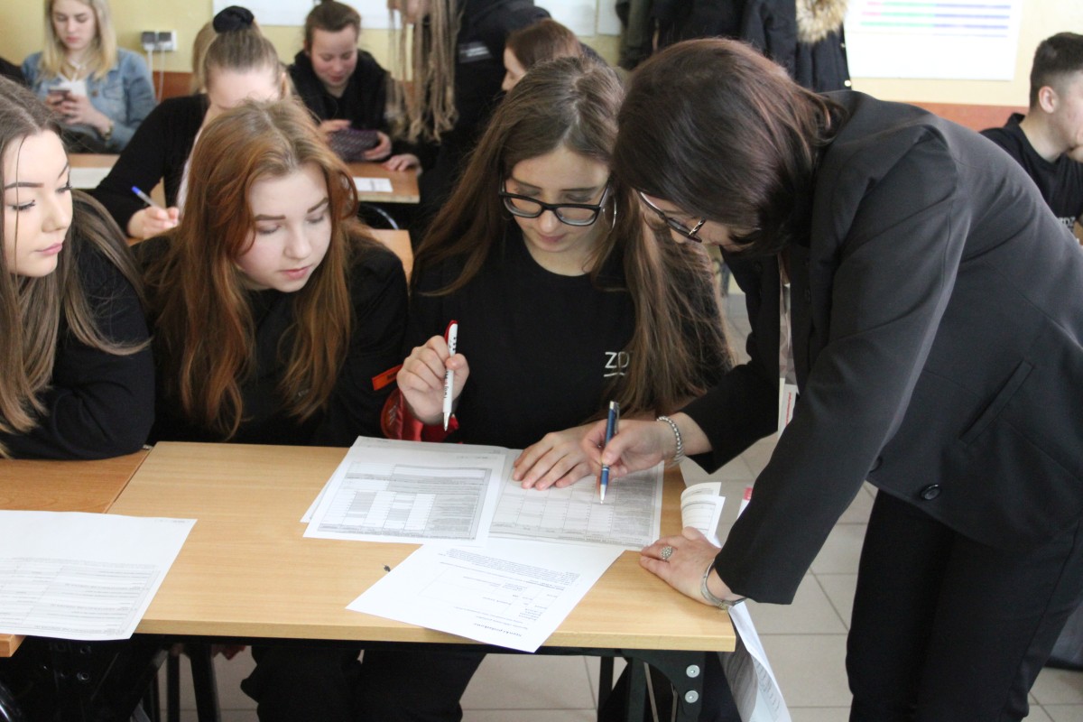 Przekonali się o tym uczniowie podczas lekcji z „Podstaw przedsiębiorczości” oraz „Działalności gospodarczej” w dniu 13 marca 2019 r. Na zaproszenie nauczycielki tych przedmiotów, p. Haliny Kosior, do szkoły przybyły przedstawicielki Drugiego Urzędu Skarbowego w Radomiu, panie Aneta Kargulewicz i Dorota Staniewska, które przybliżyły młodzieży ogólne założenia polityki podatkowej Państwa. Uczniowie, oprócz przeswojenia sobie wiedzy teoretycznej z tego zakresu, mogli sprawdzić się w praktycznych zadaniach, polegających między innymi na wypełnieniu pod okiem fachowców deklaracji podatkowej PIT 37. Podczas zajęć młodzież zadawała pytania, co świadczy o żywym zainteresowaniu problematyką podatków i pracą służb skarbowych w Radomiu. Najaktywniejsi uczniowie i najlepsi w rozwiązywaniu podatkowo-skarbowych „łamigłówek” otrzymali upominki. Taka lekcja odbyła się w szkole po raz drugi.