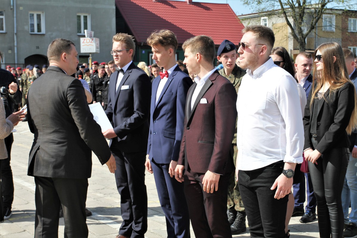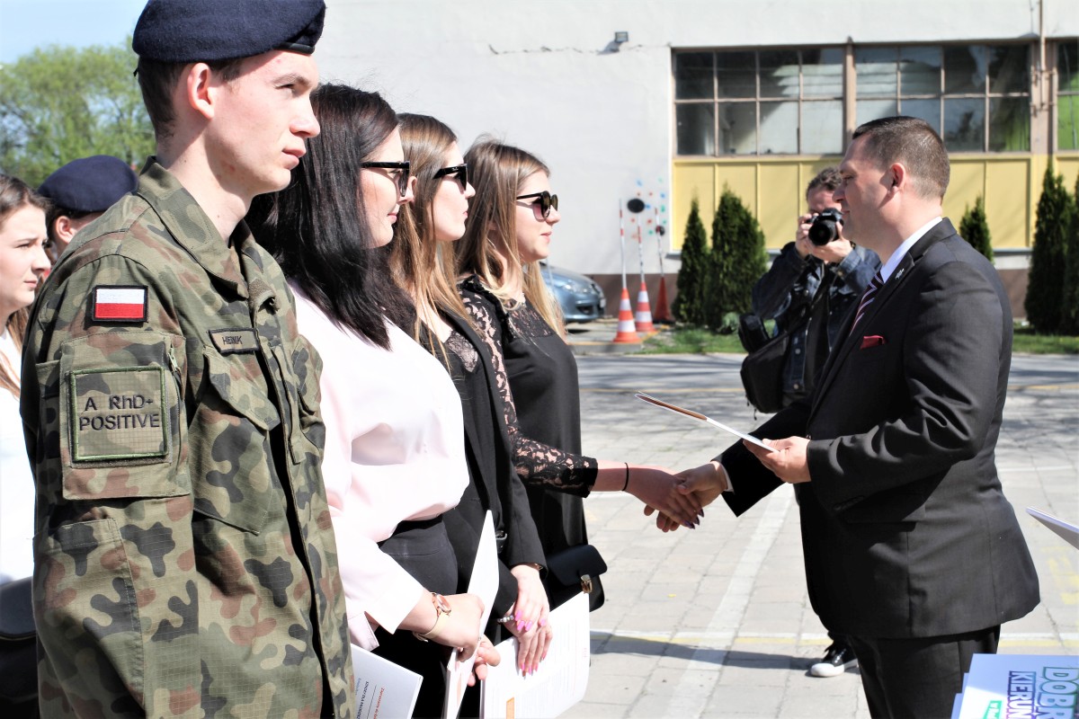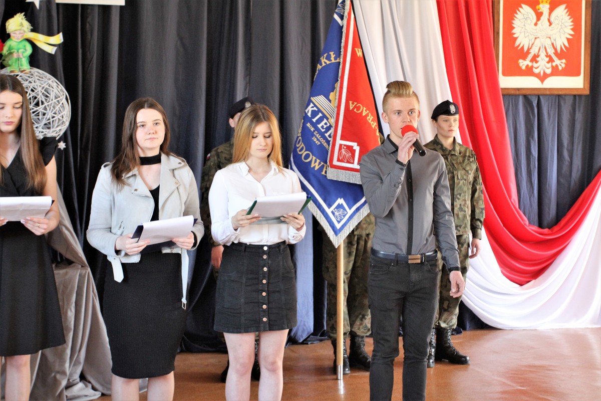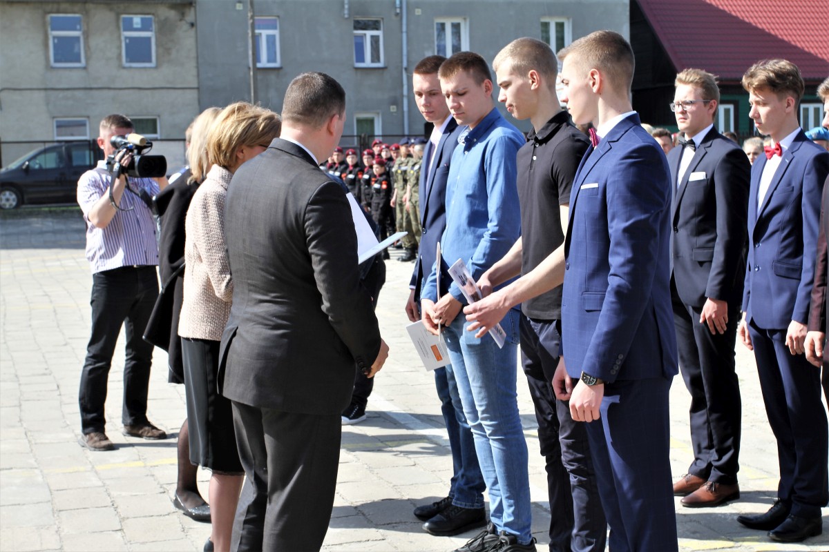„Proszę abyście zapamiętali naszą szkołę i spędzone tutaj lata jako jeden z najważniejszych okresów młodzieńczego życia. Wspominajcie najlepsze chwile, Waszych wychowawców, nauczycieli, koleżanki i kolegów ze szkolnego korytarza, niezapomniane przyjaźnie”. Tak dyrektor szkoły Katarzyna Kołodziejska żegnała tegorocznych absolwentów, dla których 26 kwietnia 2019 r. po raz ostatni zabrzmiał szkolny dzwonek. Uroczystość miała szczególny charakter. Po raz pierwszy w historii szkoły młodzież była świadkiem ceremoniału wręczenia certyfikatów uczestnikom I edycji Ogólnopolskiego Pilotażowego Programu Ministerstwa Obrony Narodowej dla Szkół Prowadzących Piony Certyfikowanych Wojskowych Klas Mundurowych. Certyfikaty w imieniu Ministra Obrony Narodowej grupie maturzystów z klas mundurowych wręczył Waldemar Zubek, dyrektor Biura ds. Proobronnych, w obecności przedstawicieli służb mundurowych miasta Radomia, kombatantów, wyższych uczelni, pracodawców, społecznych partnerów szkoły. Na wyjątkowy charakter uroczystości złożył się także akcent historyczny, związany ze zbliżającą się 228 rocznicą uchwalenia Konstytucji 3 Maja. Samo pożegnanie maturzystów przebiegło już w mniej oficjalnej atmosferze. Było symboliczne przekazanie sztandaru młodszym rocznikom, krótka akademia, nagrody i dyplomy dla absolwentów, którzy wyróżnili się wynikami w nauce oraz zaangażowaniem w życie szkoły. Nagrodzeni dyplomami zostali też ich rodzice. Wszystkim z nutką żalu żegnamy i już dziś życzymy sukcesów podczas egzaminów maturalnych.