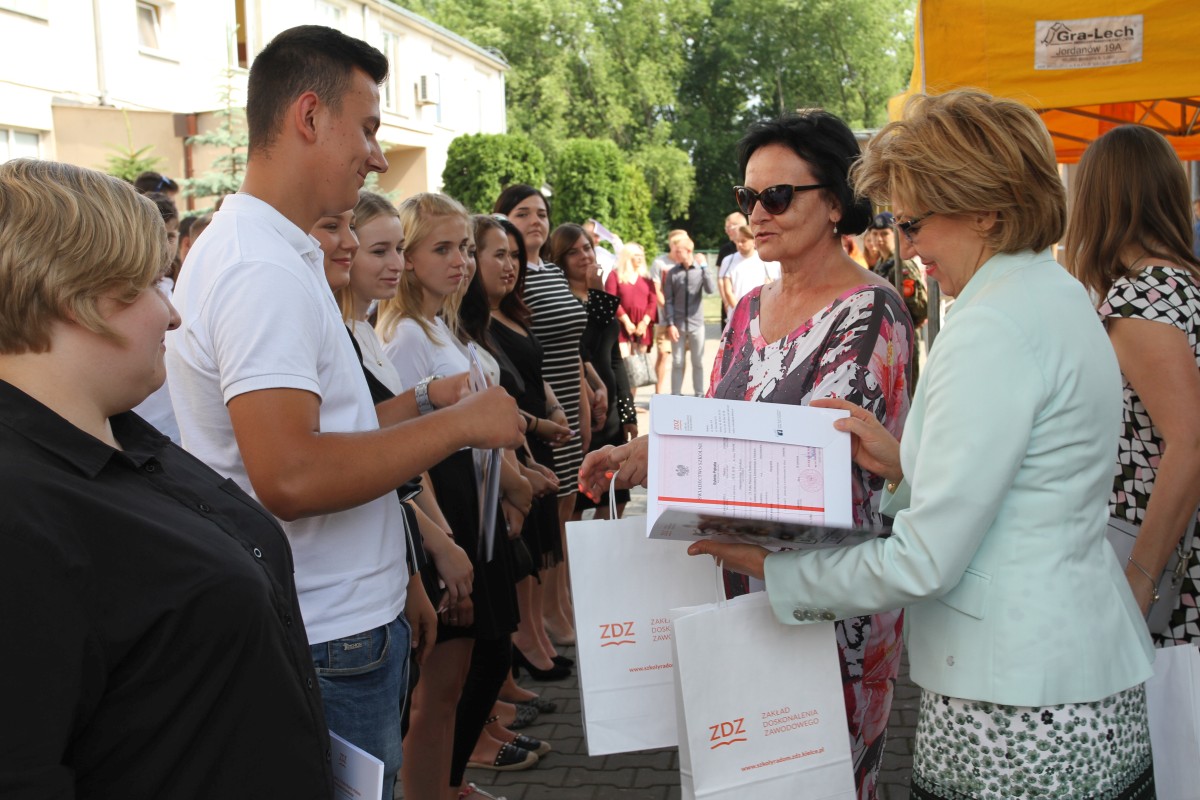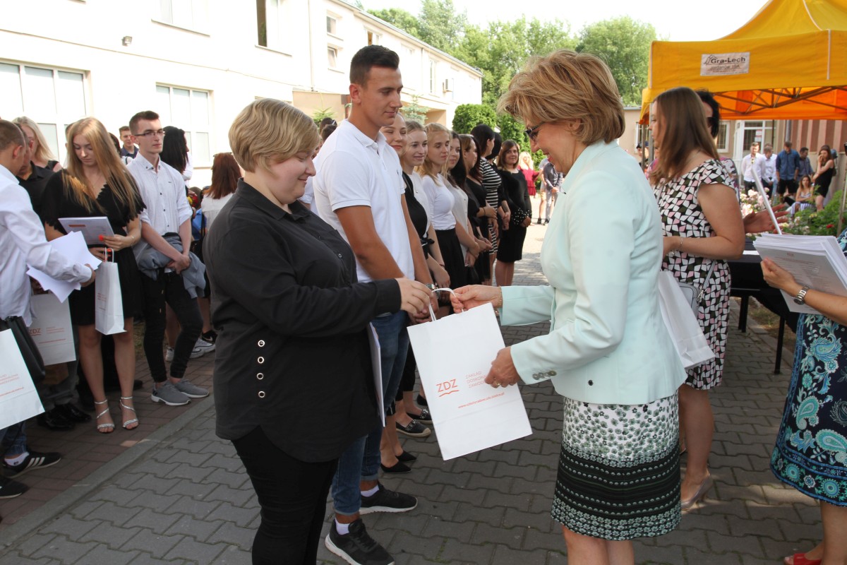 Uczniowie wszystkich typów szkół Zakładu Doskonalenia Zawodowego: gimnazjum, liceum ogólnokształcącego, technikum, szkoły branżowej i muzycznej I stopnia, pożegnali 19 czerwca rok szkolny 2018/2019. Pożegnalne ostatnie lekcje z wychowawcami w klasach poprzedziło spotkanie z dyrekcją i gronem pedagogicznym, podczas którego dyrektor Katarzyna Kołodziejska podsumowała rok szkolny, dziękując uczniom za aktywną obecność w życiu szkoły młodzieży, a prymusom gratulując bardzo dobrych wyników w nauce. Tym razem było ich wyjątkowo dużo, co świadczy o wysokim poziomie nauczania w szkole. Najlepsi otrzymali świadectwa z czerwonymi paskami, nagrody w postaci książek i powerbanków, a także listy gratulacyjne. Dyrekcja szkoły skierowała podziękowania także dla rodziców, życząc całym rodzinom zasłużonego wypoczynku. A od jutra już trwają wymarzone wakacje. Jedni wyjadą na obozy, do rodzin, inni wykorzystają letnią labę na pracę zarobkową. Wszystkich żegnamy, życzymy pięknych wakacji i do zobaczenia w nowym roku szkolnym.
