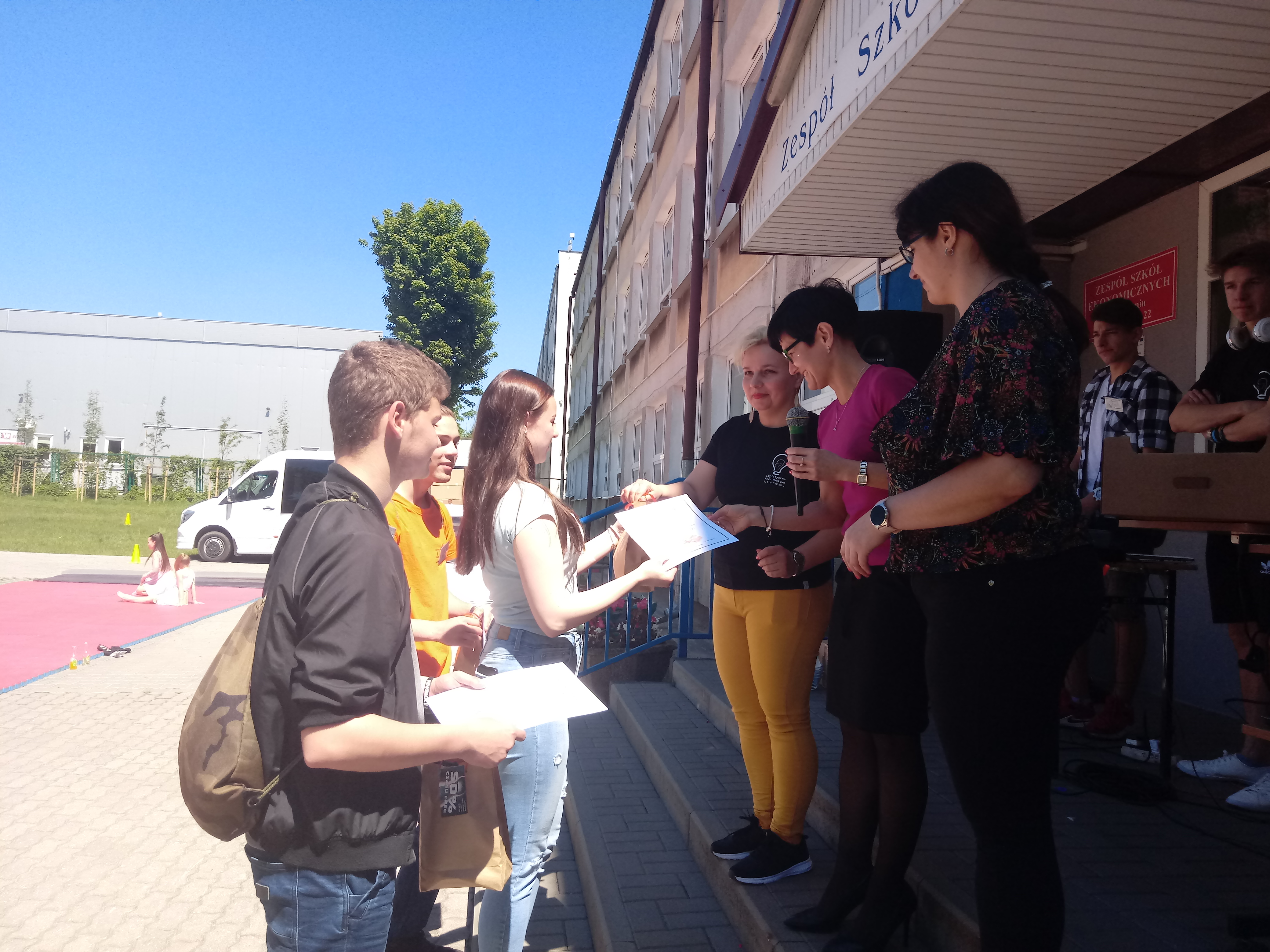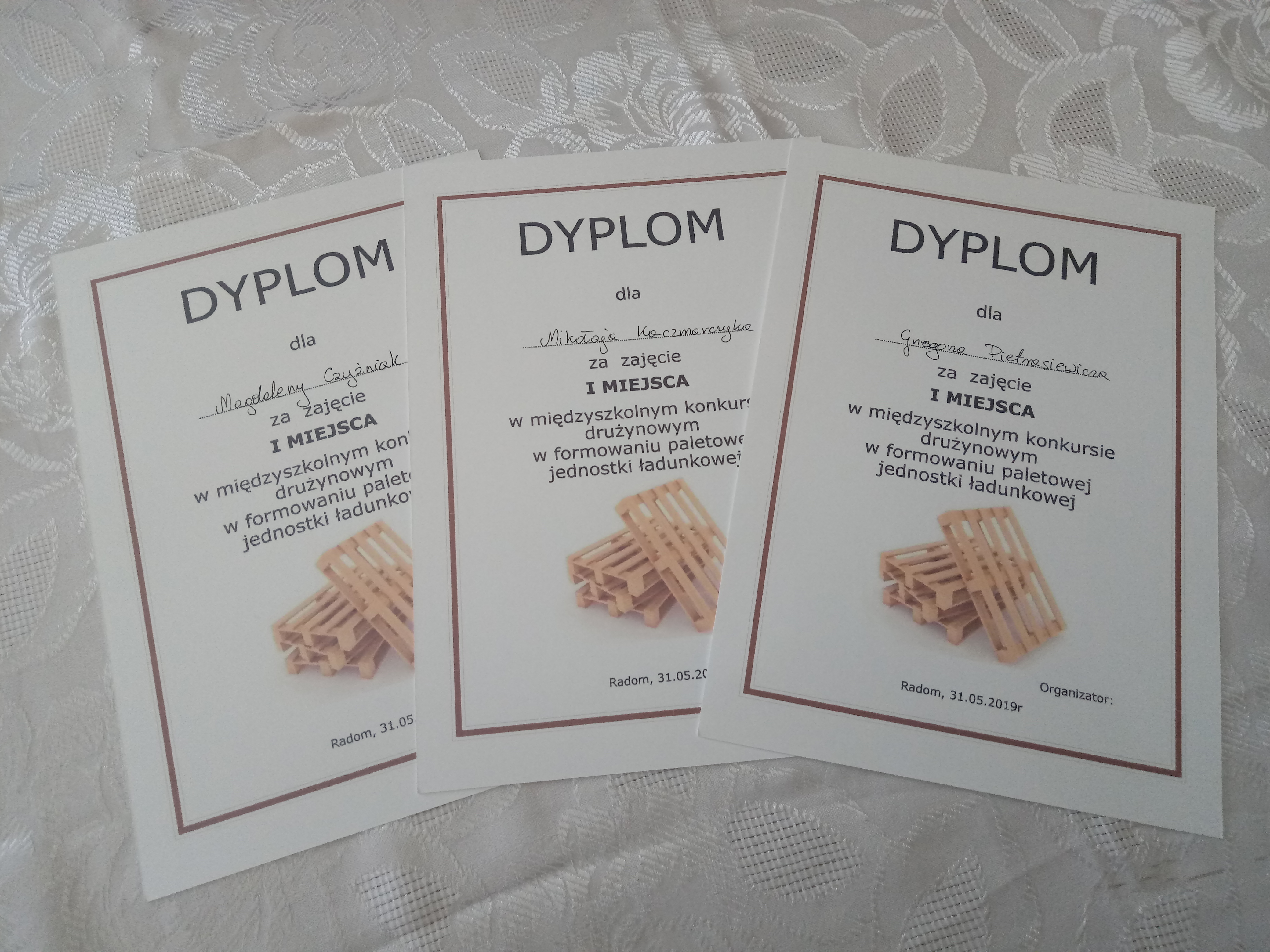Uczniowie klasy 2 TA: Magdalena Czyżniak, Mikołaj Kaczmarczyk, Patryk Prygiel oraz Grzegorz Pietrasiewicz w dniu 31.05.2019 r. wraz z opiekunem p. Renatą Repeć brali udział w I Pikniku Logistycznym. Organizatorem pikniku był Zespół Szkół Ekonomicznych w Radomiu, który za cel przyjął integrację szkół średnich kształcących specjalistów w branży TSL. Było wiele konkursów i zabaw, z czego Nasi uczniowie wygrali I Międzyszkolny Konkurs Drużynowy w formowaniu paletowej jednostki ładunkowej. Gratulujemy i życzymy dalszych sukcesów!!! Jednocześnie zapraszamy na krótką fotorelację.