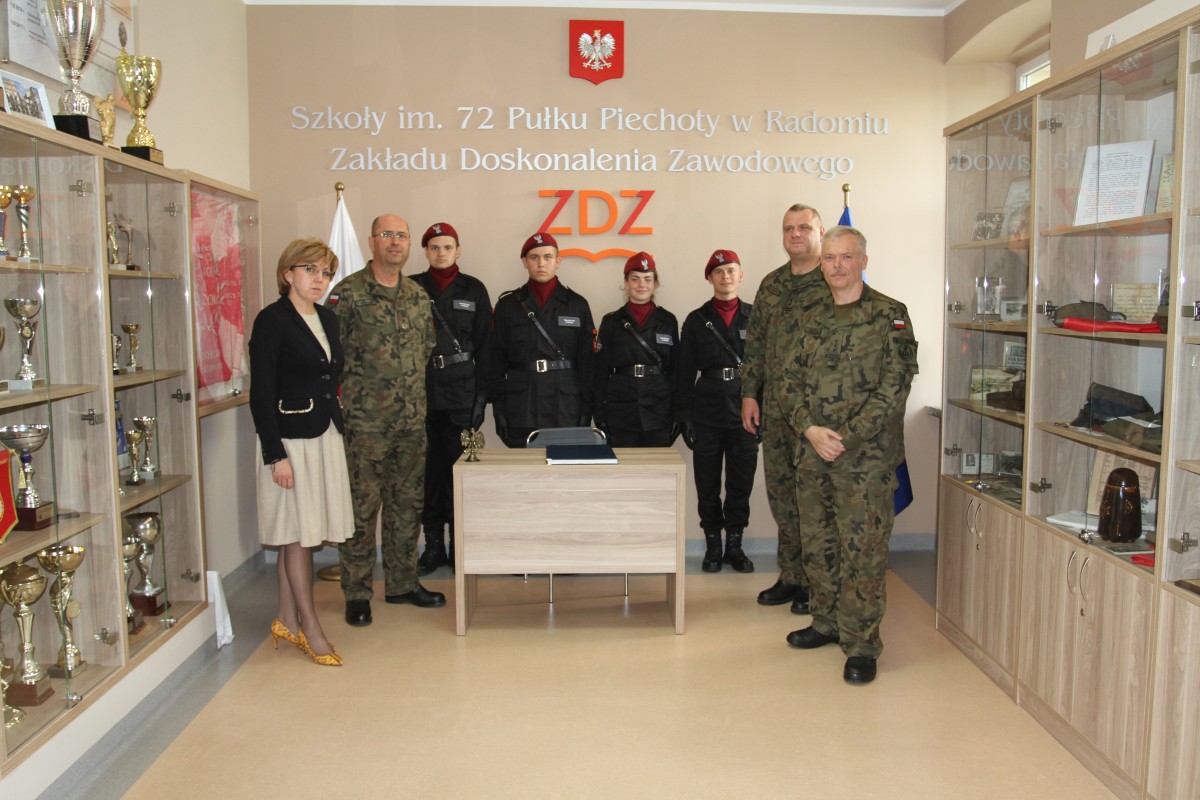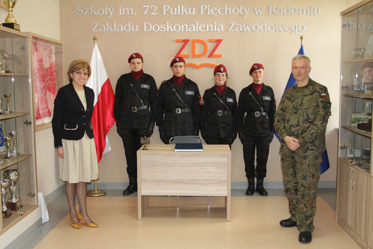 Podczas jednej z pierwszych swoich wizyt w Radomiu nowomianowany dowódca 6. Mazowieckiej Brygady Obrony Terytorialnej im. Rotmistrza Witolda Pileckiego, płk Przemysław Owczarek, odwiedził Szkoły im. 72 Pułku Piechoty w Radomiu. Gość, któremu towarzyszył ppłk Łukasz Baranowski, dowódca 62 Batalionu Lekkiej Piechoty WOT w Radomiu, zapoznał się z bogatą historią szkoły i jej funkcjonowaniem w zakresie kształcenia młodzieży klas mundurowych. W czasie spotkania była okazja do przybliżenia 10-letnich dokonań, których zwieńczeniem jest realizowany od trzech lat program pilotażowy Ministerstwa Obrony Narodowej. Dyrektor szkoły Katarzyna Kołodziejska poinformowała o współpracy placówki ze służbami mundurowymi oraz wojskami obrony terytorialnej od początku ich istnienia. Na zakończenie spotkania płk Przemysław Owczarek zwiedził szkolną salę tradycji, wpisując się do księgi honorowej.