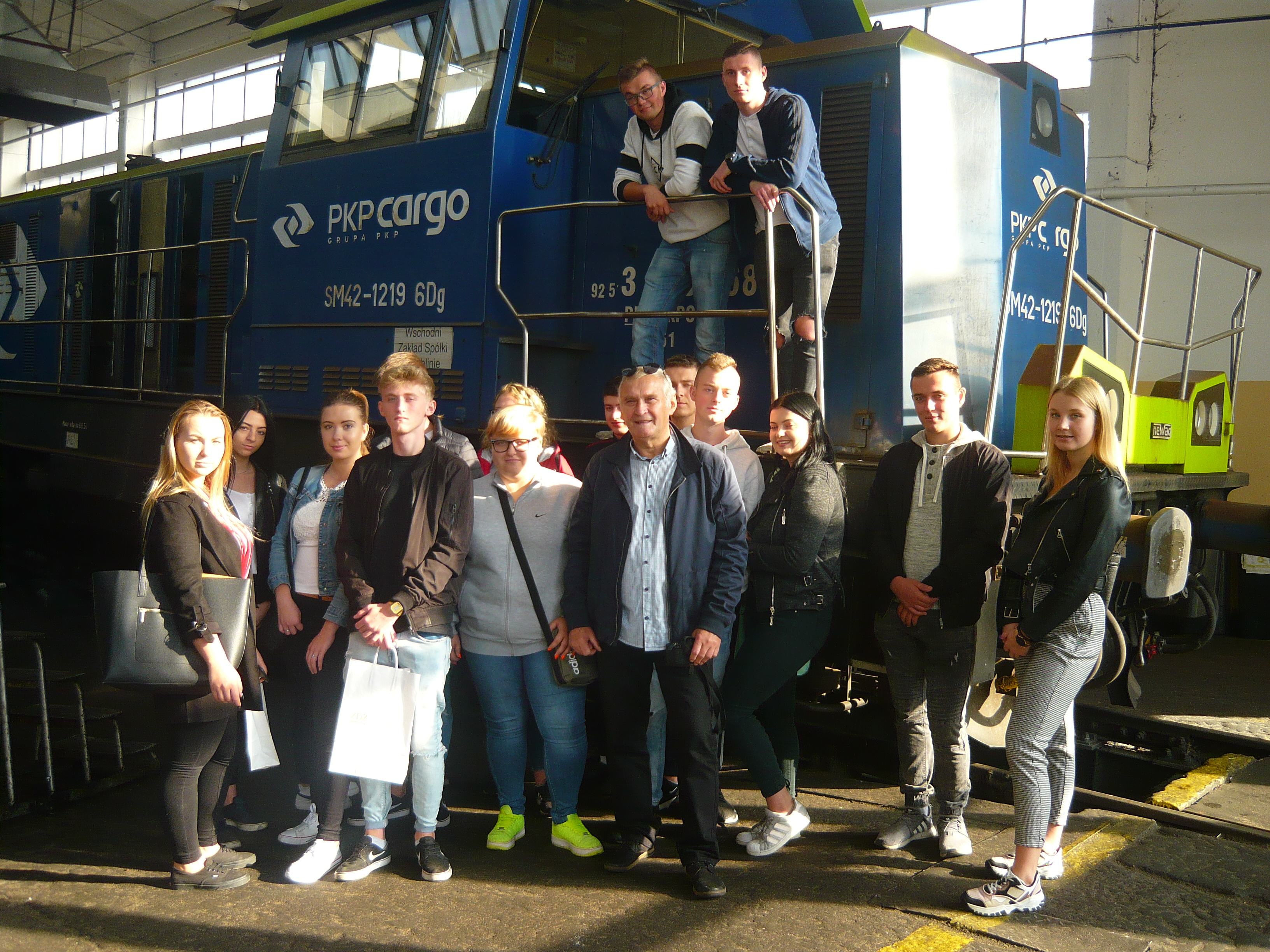 22 października 2019 r. uczniowie klas 2Tb, 3 Tb i 4Tb o kierunku kształcenia Technik transportu kolejowego zwiedzili Wschodni Zakład Spółki PKP Cargo z siedzibą w Skarżysku Kamiennej. To jeden z największych tego typu w Polsce, który na swoim stanie inwentarzowym ma 150 lokomotyw elektrycznych i 20 spalinowych. Zakład jest odpowiedzialny za ich bieżącą eksploatację i naprawy. Sprawna organizacja pracy oraz nowoczesne urządzenia sprawiają, że lokomotywy naprawiane są tu terminowo, co z kolei wpływa na płynną realizację planów przewozowych. Młodzież oraz nauczycieli: Pawła Raczyńskiego i Andrzeja Sitarskiego, serdecznie przyjął dyrektor Władysław Stachowicz. Następnie wyznaczeni pracownicy zapoznali uczniów z pracą na poszczególnych stanowiskach związanych z dokonywaniem pomiarów, akumulatorownią, naprawą pantografów, organizacją i pracą magazynów oraz stanowiskiem napraw bieżących. Duże zainteresowanie wzbudziła specjalna tokarka do obróbki zestawów kołowych lokomotywy bez ich demontażu tzw. podtorówka oraz stanowisko do napawania obręczy zestawów kołowych i ich utwardzania. Pracownicy Zakładu udzielili odpowiedzi na pytania uczniów, które dotyczyły m.in. działania urządzeń i możliwości ewentualnej pracy. Wizytę zakończyła sesja zdjęciowa na pamiątkę tego pożytecznego spotkania.