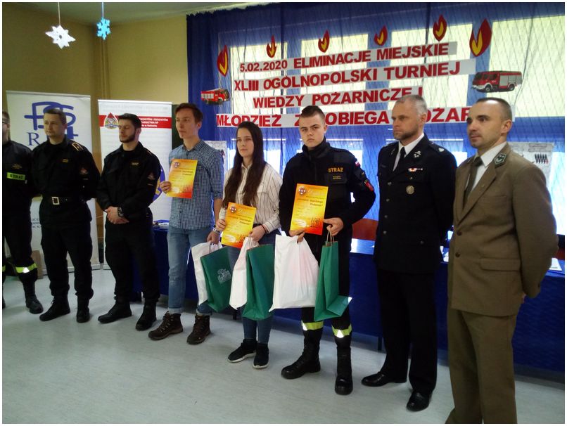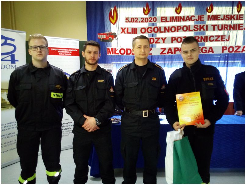 5 lutego 2020 r. w Publicznej Szkole Podstawowej nr 4 w Radomiu odbył się Turniej Wiedzy Pożarniczej pod hasłem " Młodzież zapobiega pożarom" Organizatorami byli: Wydział Edukacji Urzędu Miejskiego, Państwowa Straż Pożarna, Ochotnicza Straż Pożarna w Radomiu, Nadleśnictwo Radom, Związek Emerytów i Rencistów Pożarnictwa RP koło w Radomiu. Naszą szkołę w grupie Radomskich Szkół Średnich reprezentowali: Alicja Rejczak z kl. 1TF oraz Grzegorz Marszałek i Cezary Skorupski – kl. 2LB. Pierwsze miejsce zajął Grzegorz Marszałek, kwalifikując się tym samym do kolejnego etapu - Turnieju Powiatowego który prawdopodobnie odbędzie się 14 marca 2020 r. w Jedlni Letnisko). Czarek i Alicja na 7 miejscu. Naszemu koledze gratulujemy zwycięstwa.
