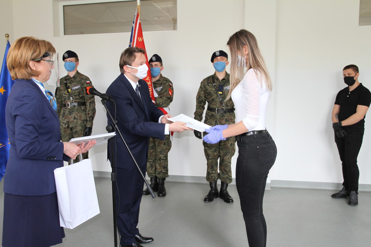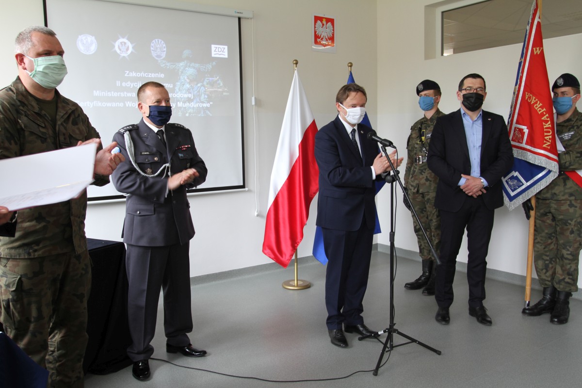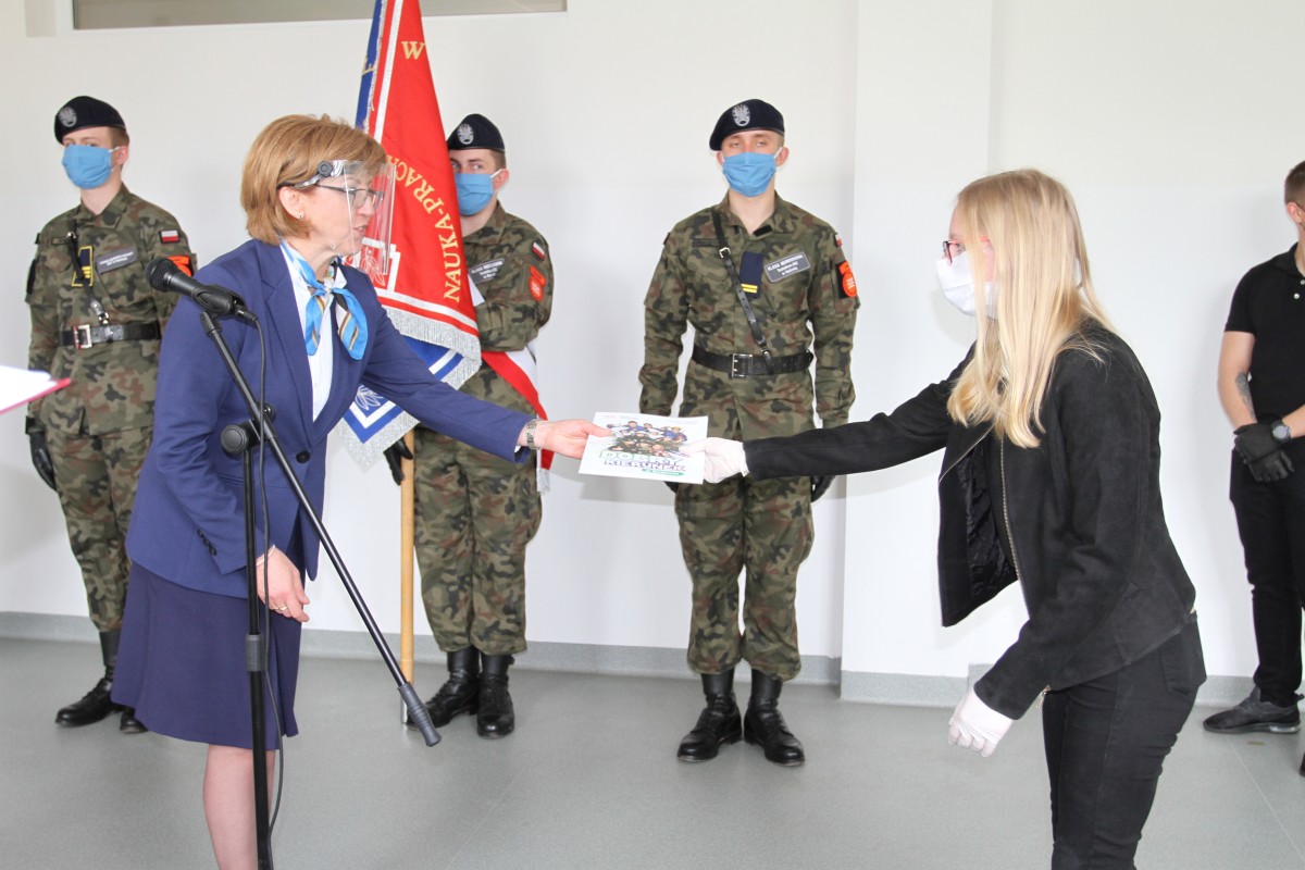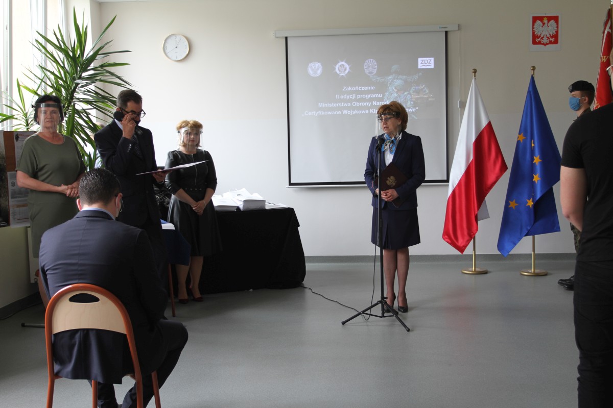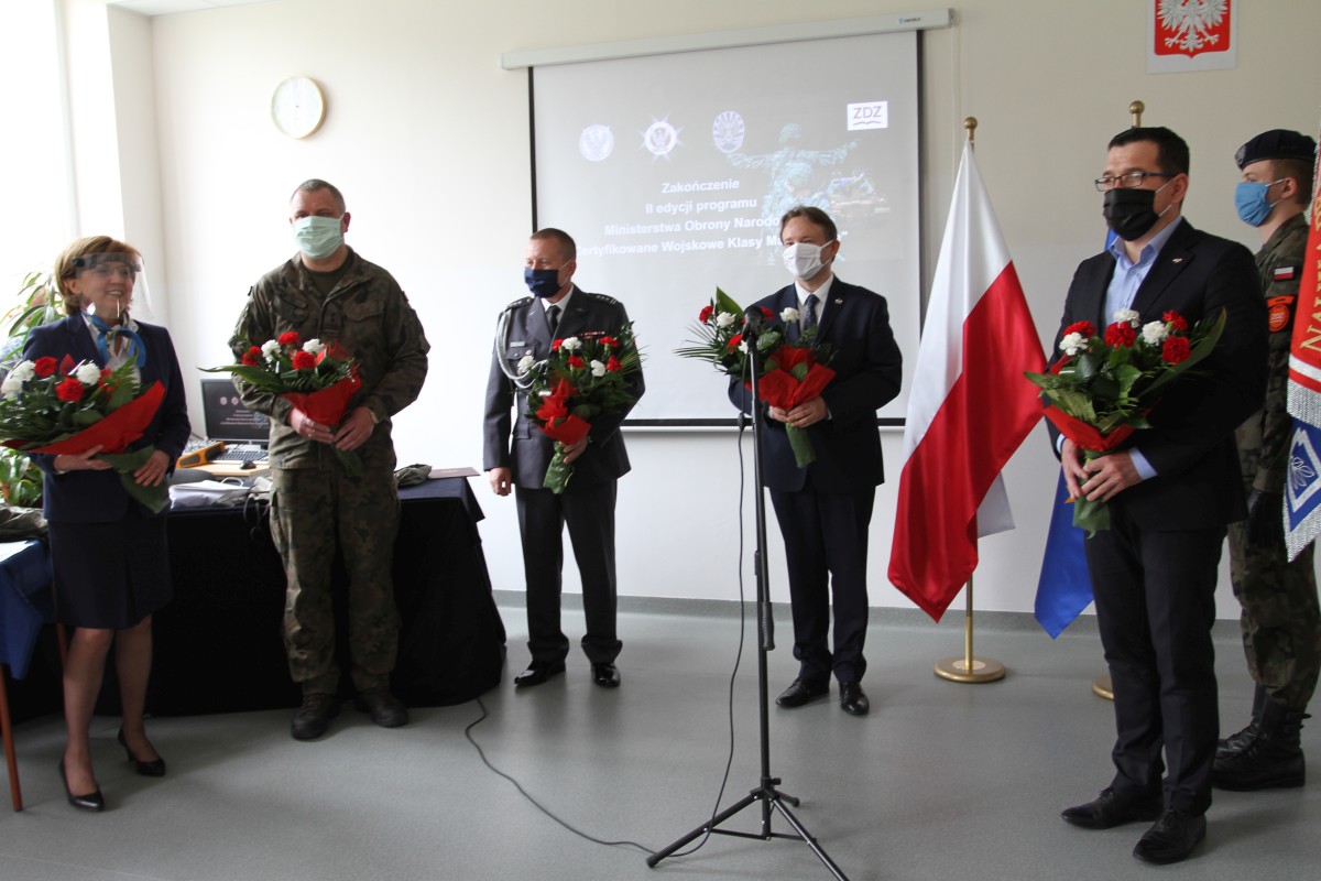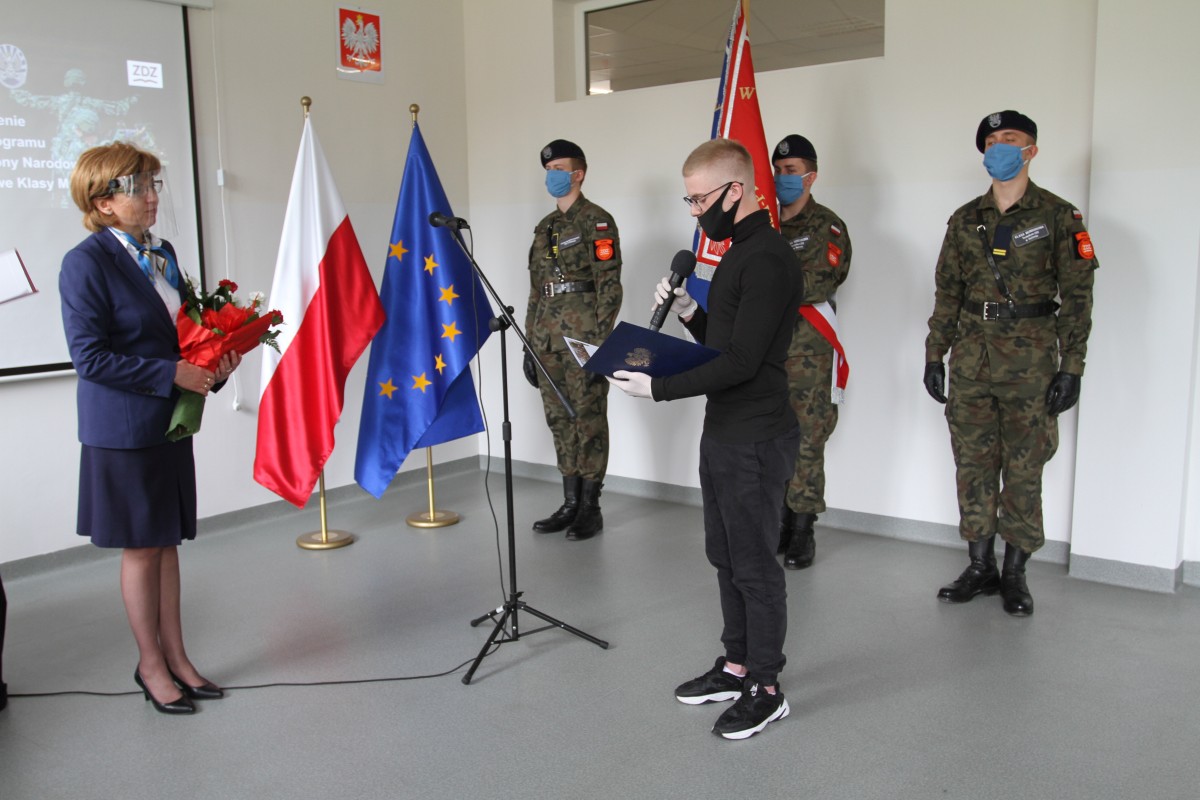 19 maja 2020 r. delegacja tegorocznych absolwentów szkoły – uczestników 2. edycji Programu Ministerstwa Obrony Narodowej „Certyfikowane Wojskowe Klasy Mundurowe” odebrała certyfikaty MON zakończenia udziału w tym programie. Uczniowie otrzymali również listy gratulacyjne od dyrektor szkoły Katarzyny Kołodziejskiej. Uroczystość zakończenia tej edycji ministerialnego programu zaszczyli swoją obecnością: Paweł Dycht – zastępca dyrektora Departamentu Edukacji, Kultury i Dziedzictwa Ministerstwa Obrony Narodowej, Łukasz Podlewski – radny Rady Miejskiej w Radomiu, przewodniczący Komisji Rewizyjnej, a także przedstawiciele służb mundurowych: płk Mirosław Cenkiel – zastępca dowódcy 42 Bazy Lotnictwa Szkolnego w Radomiu, ppłk Łukasz Baranowski – dowódca 62 Batalionu Lekkiej Piechoty Wojsk Obrony Terytorialnej w Radomiu i mjr Artur Łęcki z Wojskowej Komendy Uzupełnień w Radomiu. Uczniowie i opiekun programu, mjr Andrzej Wójtowicz, zostali obdarowali okolicznościowymi nagrodami rzeczowymi, ufundowanymi przez Ministerstwo Obrony Narodowej. W imieniu absolwentów Sebastian Ogar podziękował dyrekcji na umożliwienie udziału w realizacji programu, który jest szansą do rozpoczęcia kariery w Wojsku Polskim, szkołą patriotyzmu i umiłowania Ojczyzny. Gratulacje złożyli młodzieży i ich nauczycielom płk Mirosław Cenkiel oraz ppłk Łukasz Baranowski. Zabierając głos w imieniu Wiceministra Obrony Narodowej Wojciecha Skurkiewicza, Paweł Dycht podziękował Szkołom im. 72 Pułku Piechoty za troskę w rozwój szkolnictwa wojskowego oraz wkład w wychowanie patriotyczne i proobronne kolejnych pokoleń radomskiej młodzieży. Pod adresem młodzieży skierowane zostały życzenia „połamania piór” na egzaminie maturalnym oraz dalszych wspaniałych osiągnięć w zdobywaniu wiedzy i umiejętności zawodowych.