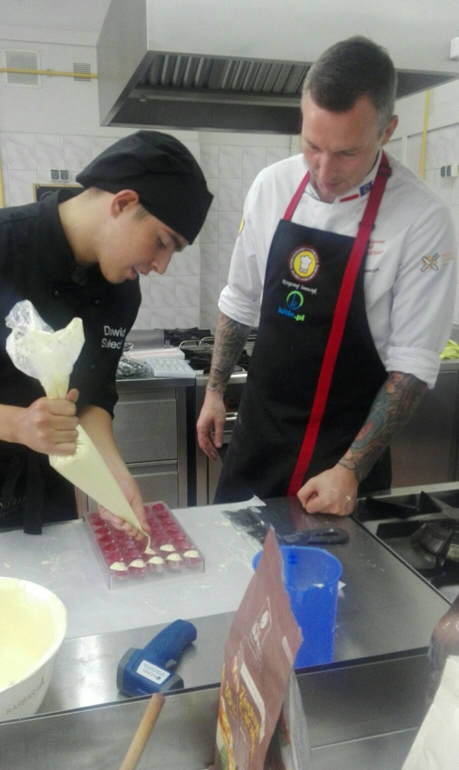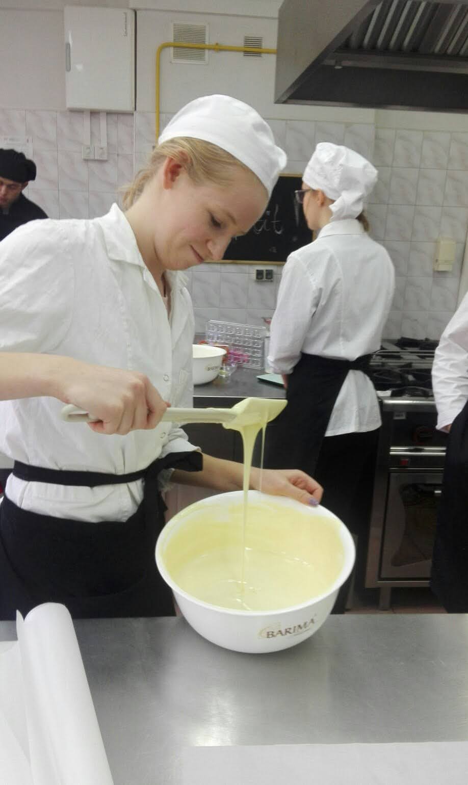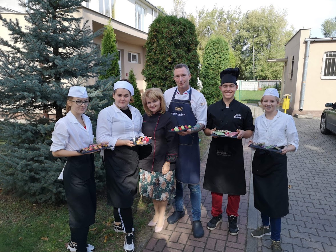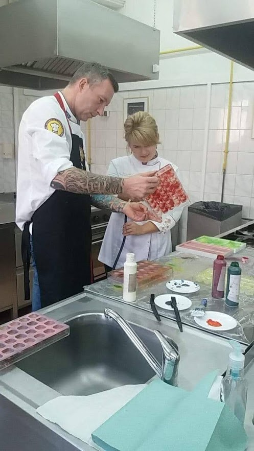 W dniach 3-4 października, uczniowie uczący się w kierunku Technik Żywienia i Usług Gastronomicznych, realizowali zajęcia z zakresu ,,podstaw pracy z czekoladą", w ramach projektu EKO SPECJALISTA - KUCHARZ. Podczas szkolenia uczniowie nauczyli się temperować czekoladę ( dzięki temu zabiegowi czekolada jest błyszcząca)i wylewać nią różne formy. Dowiedzieli się jak namalować na powierzchni pralin dowolny wzór, poznali także sposób przygotowywania nadzień tzw. ganaszy, w wielu nieoczywistych ale przepysznych smakach.