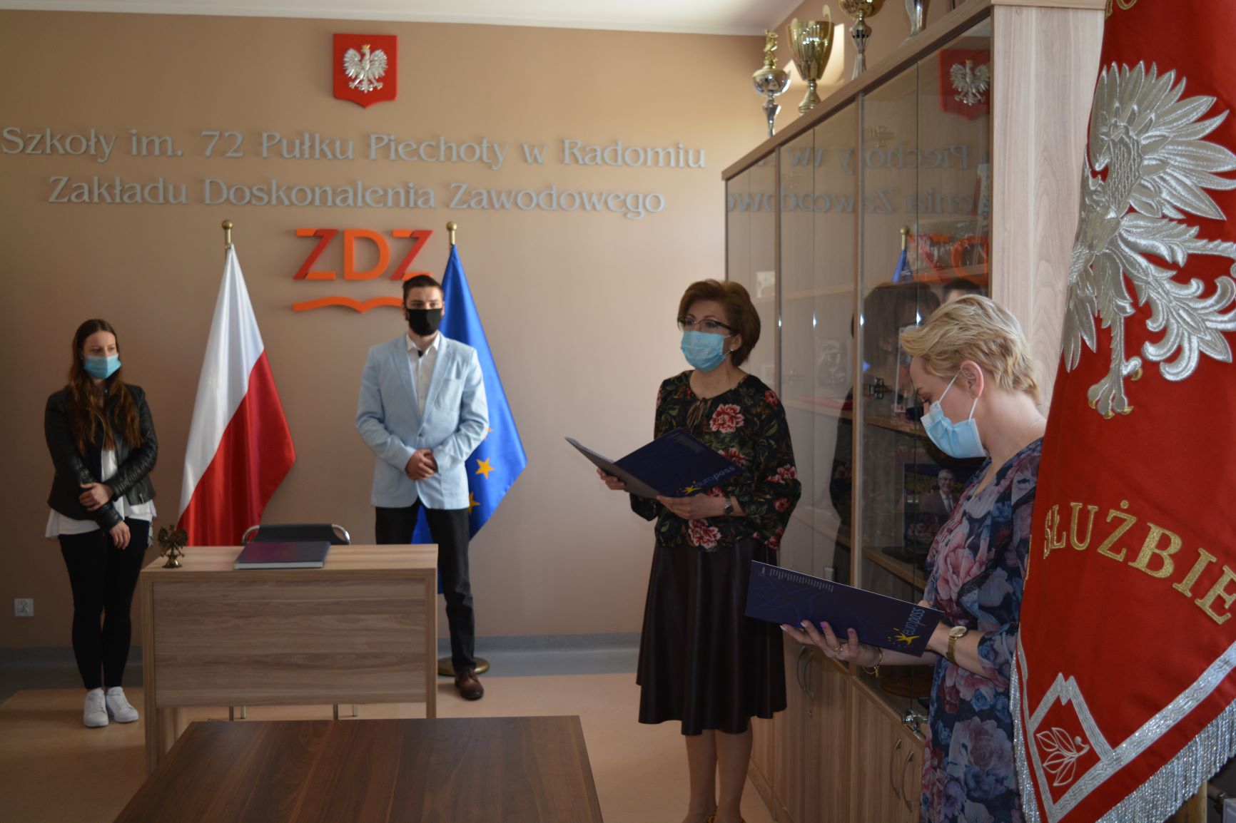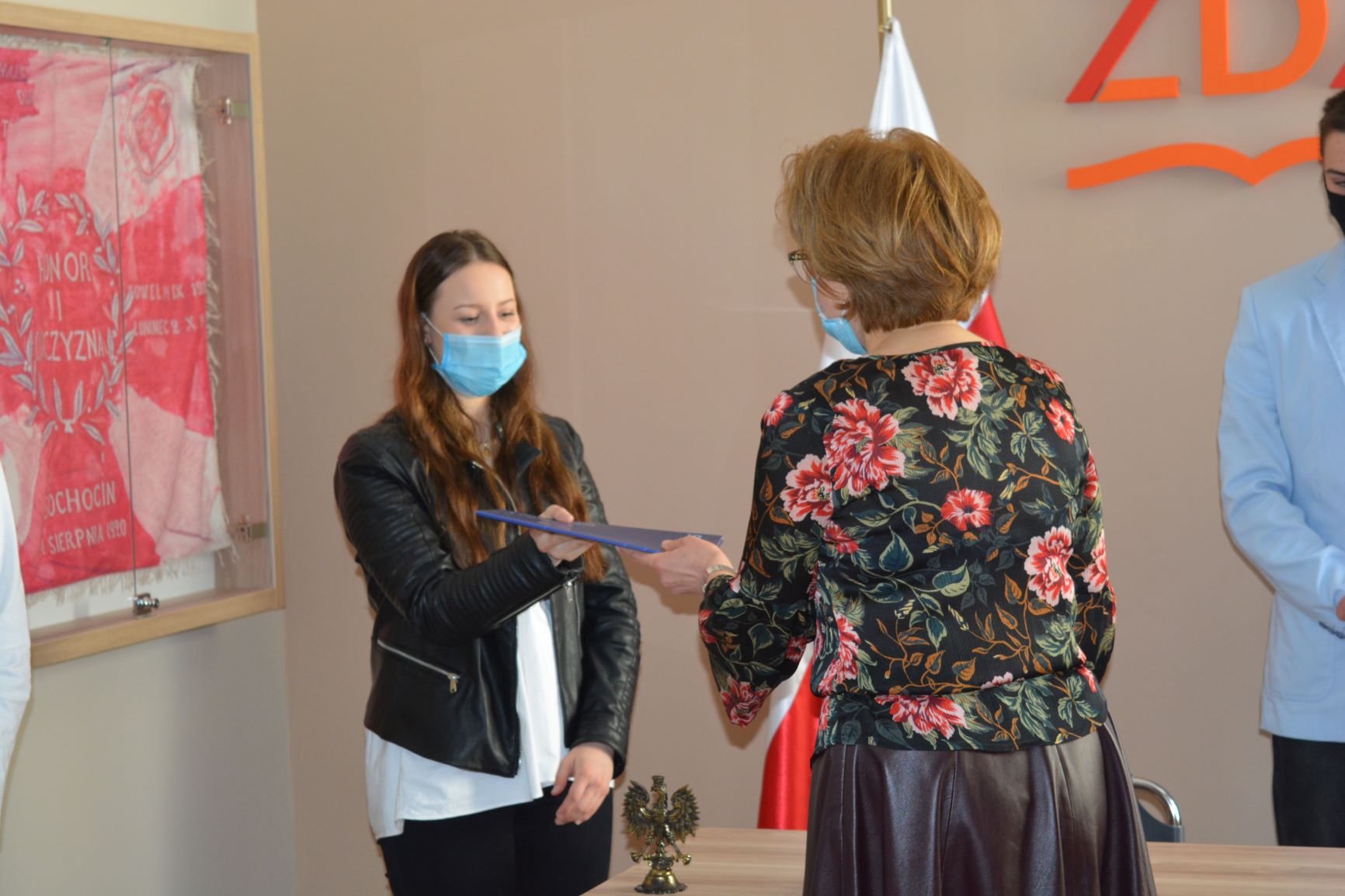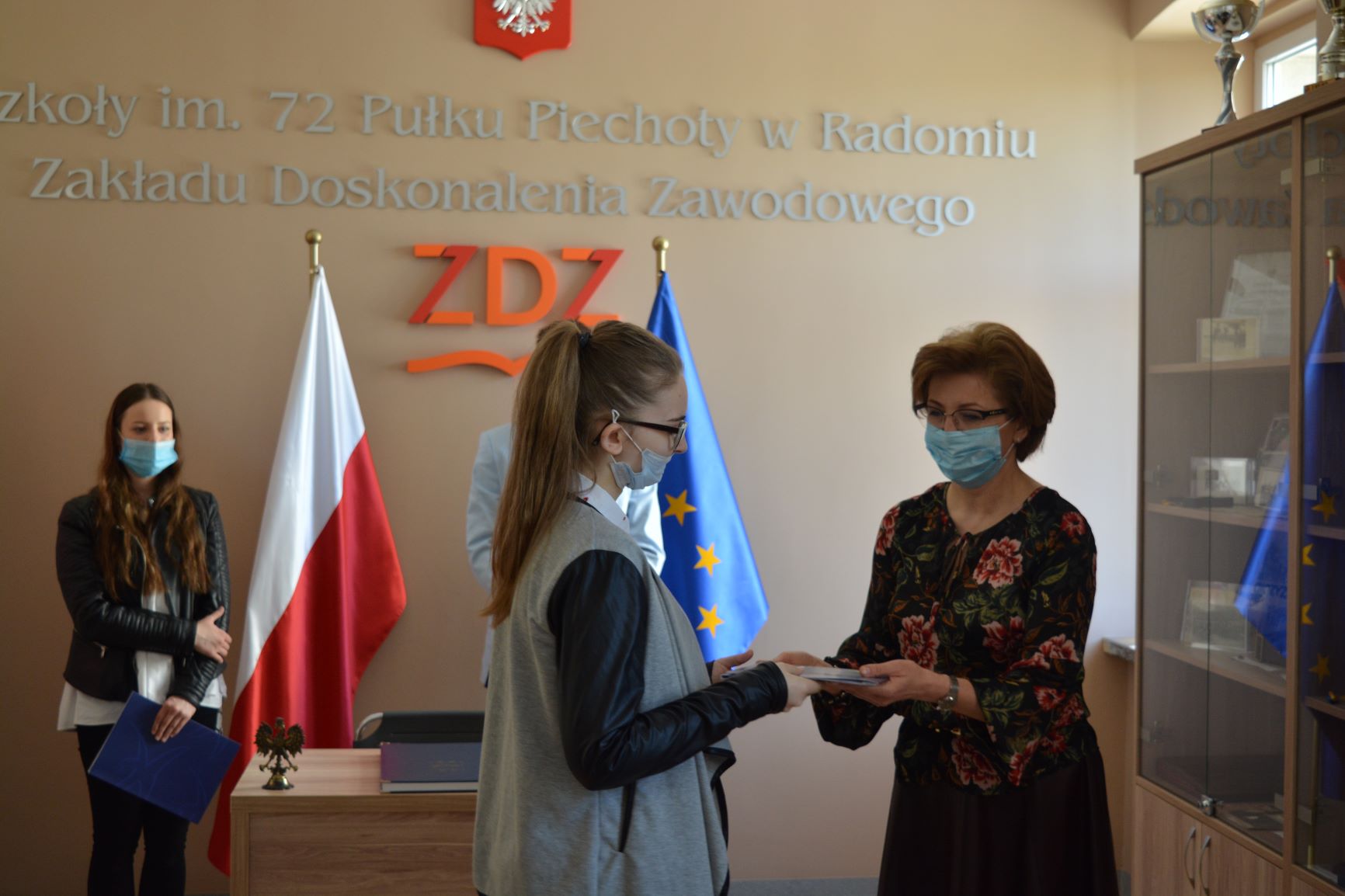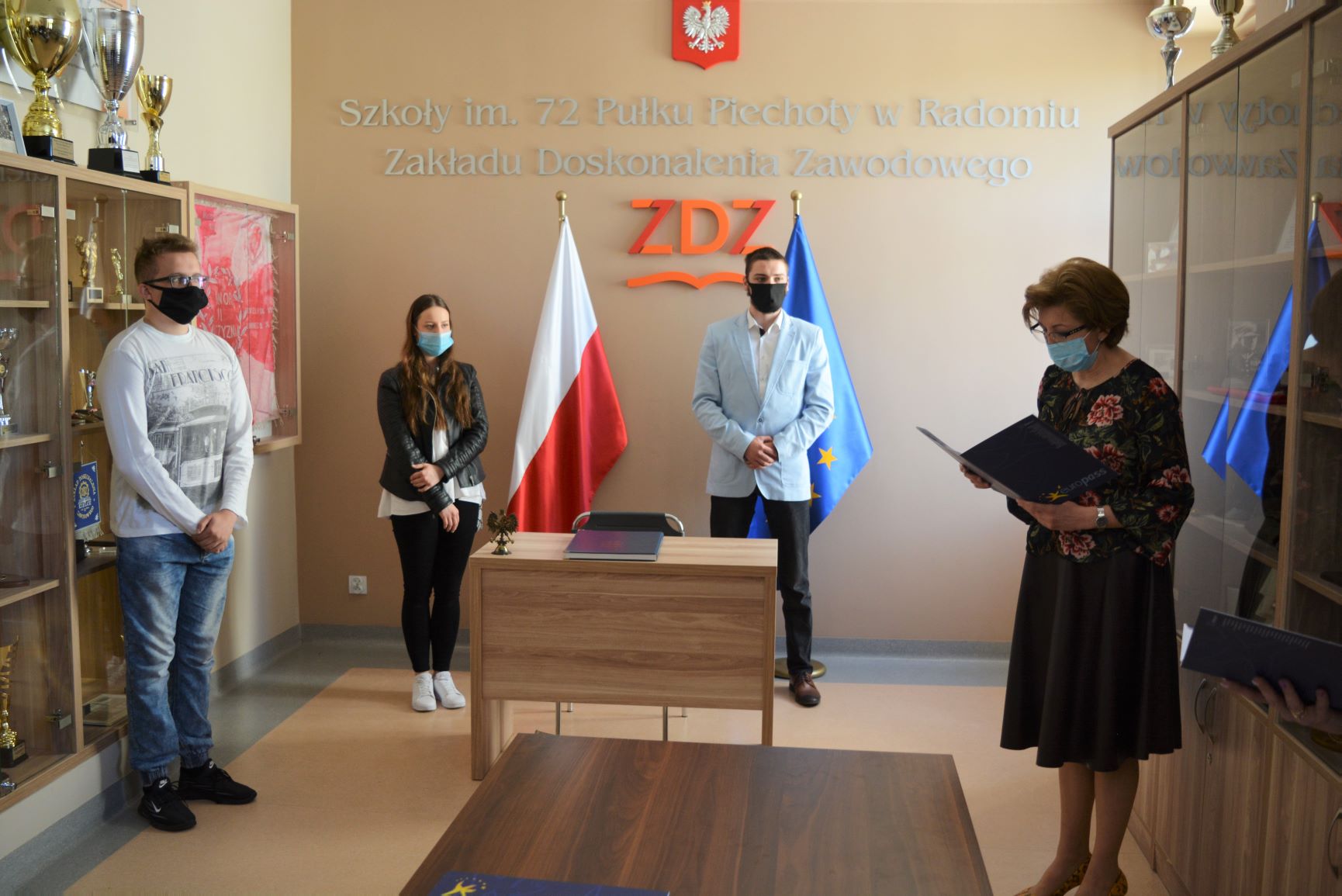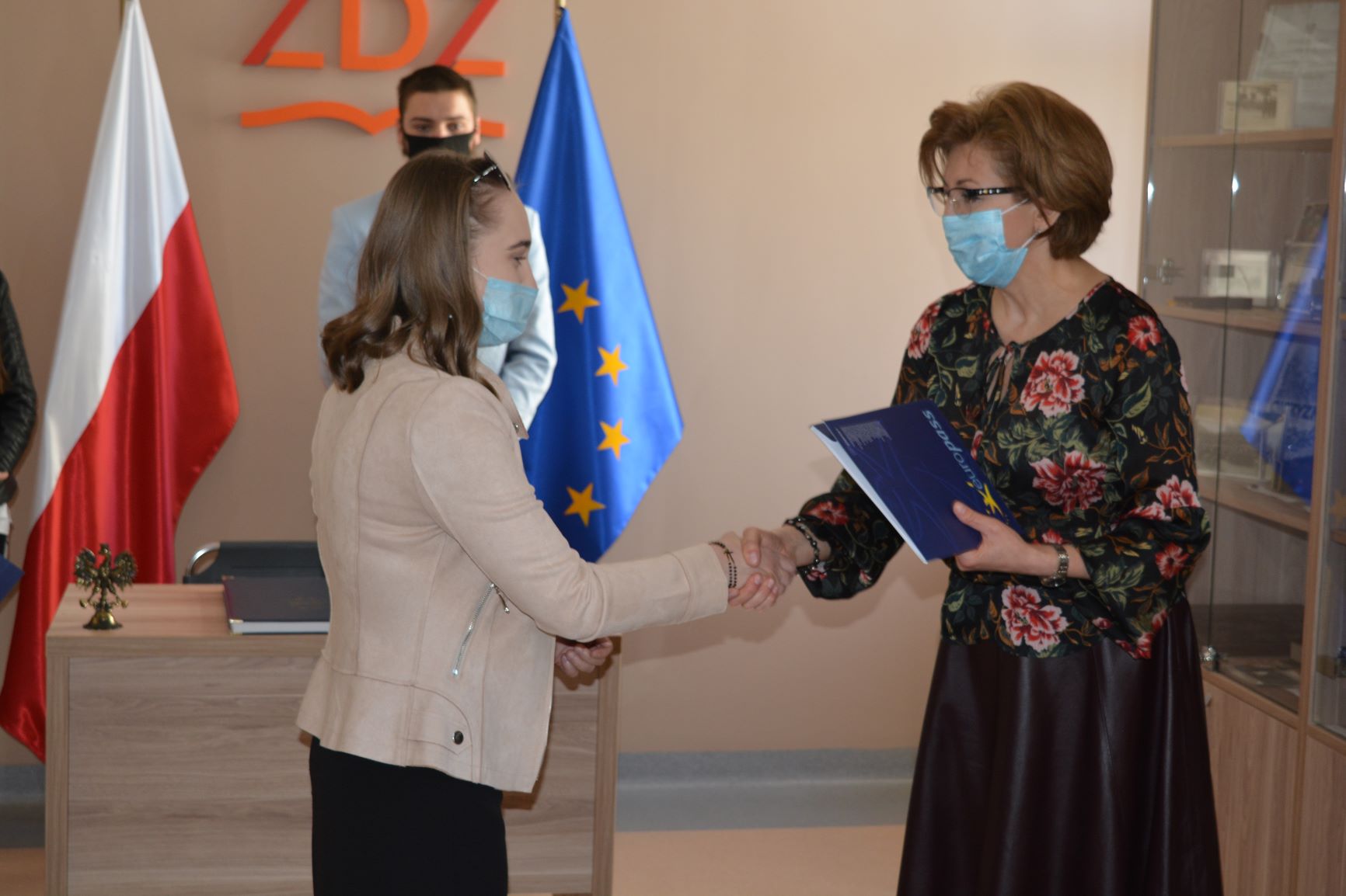 26 tegorocznych maturzystów z kierunków: technik usług fryzjerskich, technik żywienia i usług gastronomicznych, technik informatyk i technik logistyk, odebrało 10 maja 2021 r. bardzo ważne dokumenty, potwierdzające nabyte kwalifikacje zawodowe w trakcie nauki w szkole. To certyfikaty EUROPASS, zaświadczające o odbytym stażu zawodowym w Dreźnie oraz Walencji, w ramach europejskiego projektu ERASMUS.