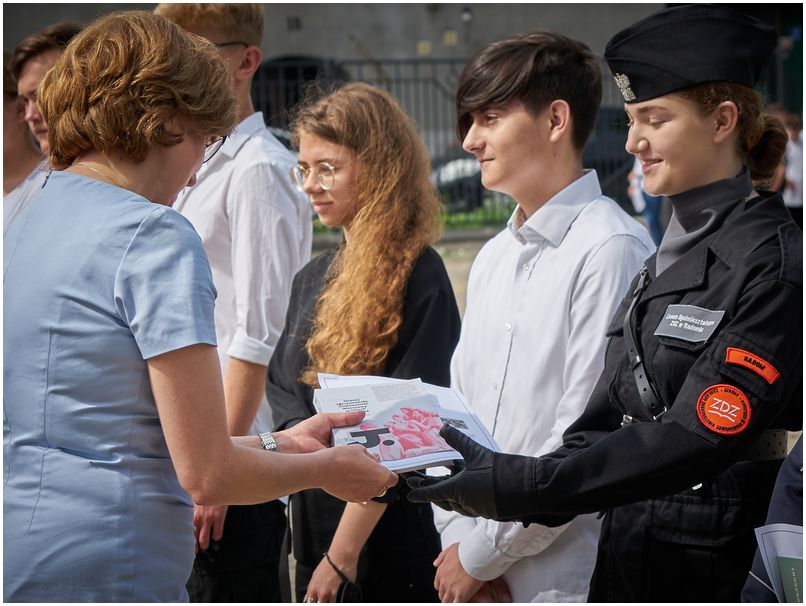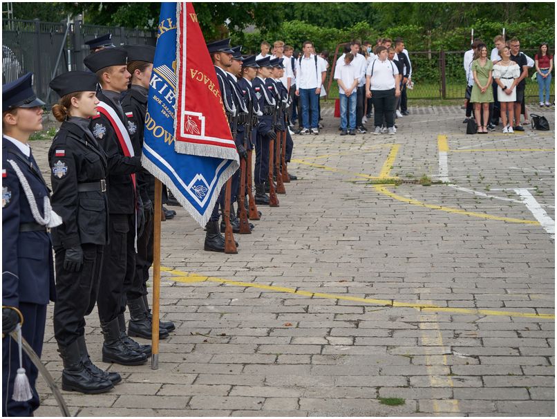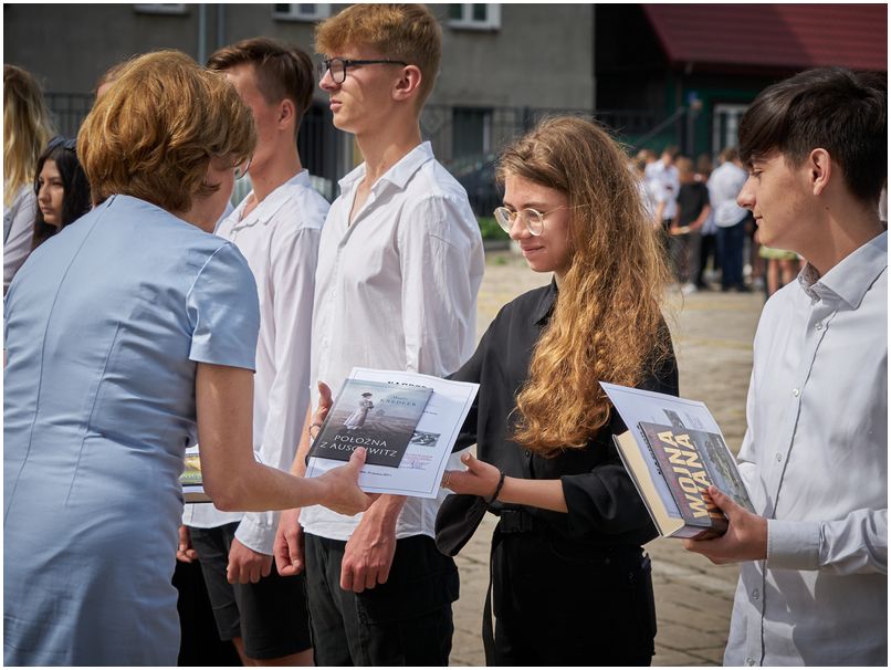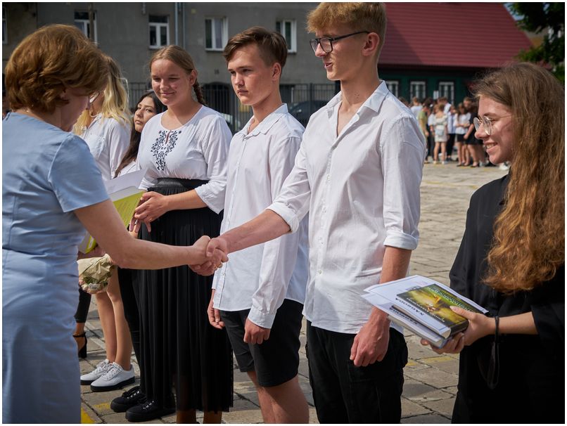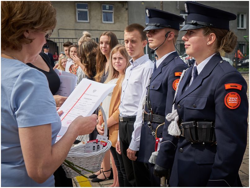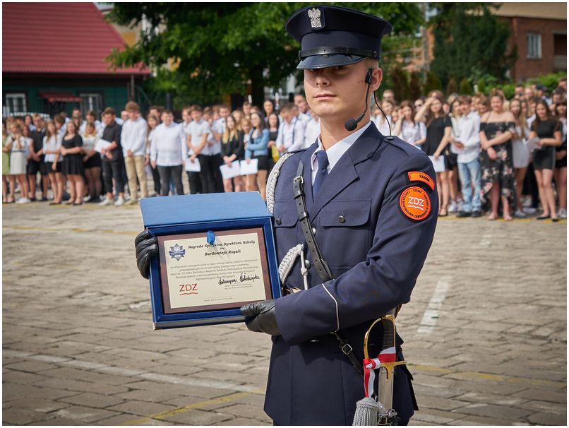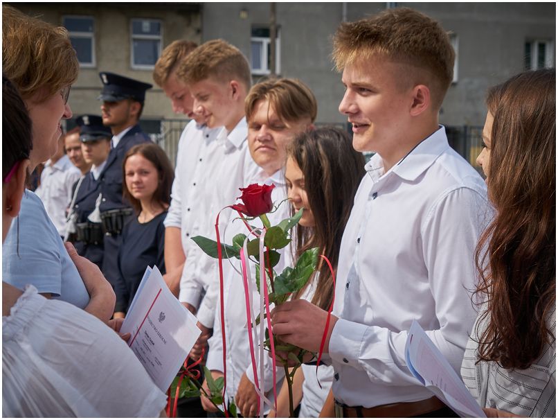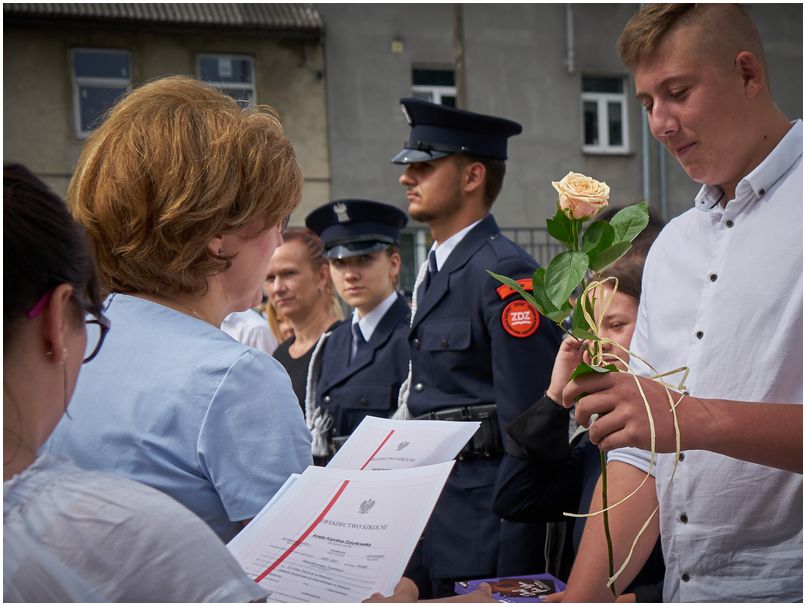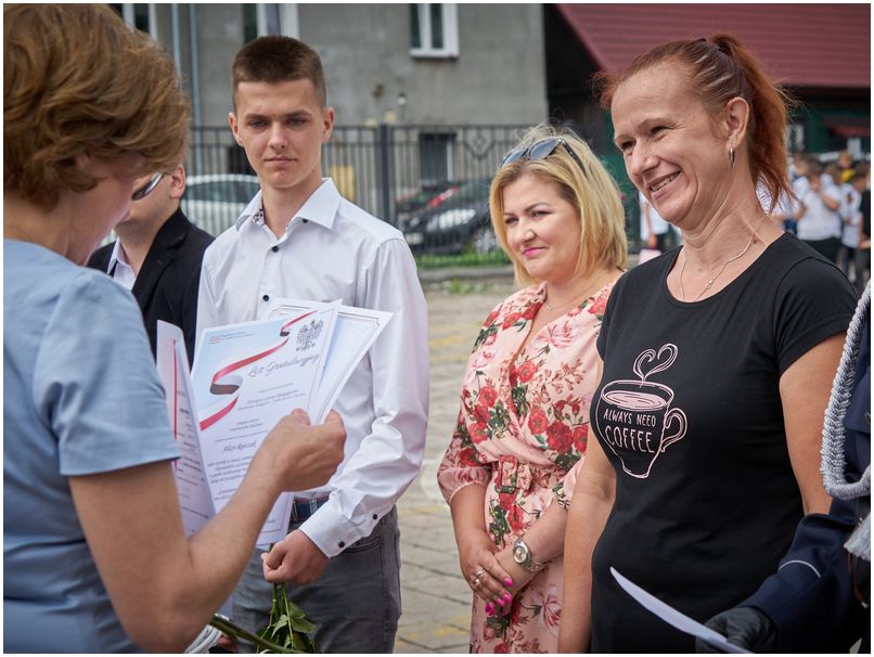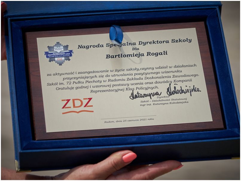 W piątek 25 czerwca 2021r. w Szkołach im. 72 Pułku Piechoty w Radomiu odbyło się uroczyste zakończenie roku szkolnego. Pani dyrektor Katarzyna Kołodziejska podziękowała uczniom i pracownikom za trudny rok nauki i pracy oraz wręczyła wyróżnionym świadectwa z biało czerwonym paskiem. Nagrodę specjalną Dyrektora Szkoły otrzymał Bartłomiej Rogala, za aktywność i zaangażowanie w życie szkoły i czynny udział w działaniach przyczyniających się do utrwalenia pozytywnego wizerunku Szkół im. 72 Pułku Piechoty w Radomiu Zakładu Doskonalenia Zawodowego.