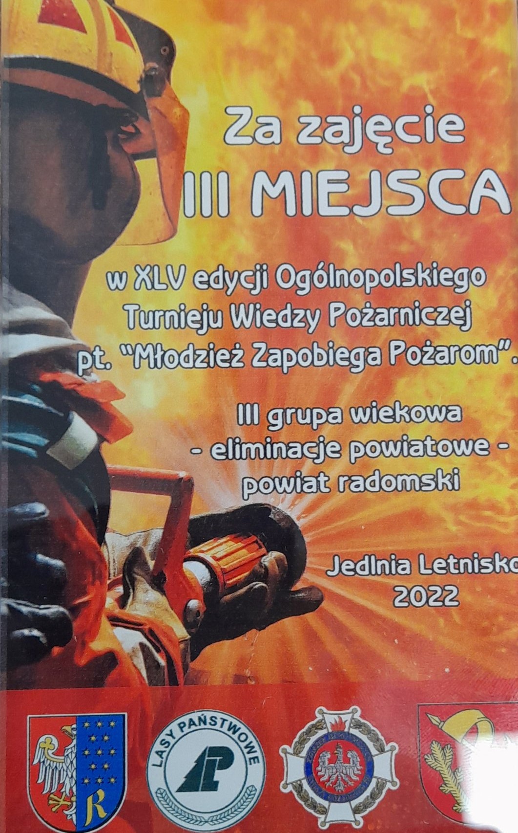 Dnia 11 marca 2022 r. uczeń klasy 1LA Tomasz Pająk zajął III miejsce w Eliminacjach Powiatowych XLV Ogólnopolskiego Turnieju Wiedzy Pożarniczej pod hasłem : ʺMłodzież zapobiega pożaromʺ reprezentując Szkoły im. 72 Pułku Piechoty w Radomiu. Składamy gratulacje i życzymy dalszych sukcesów.